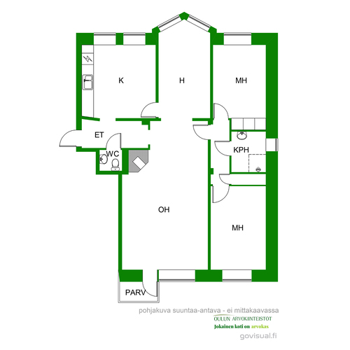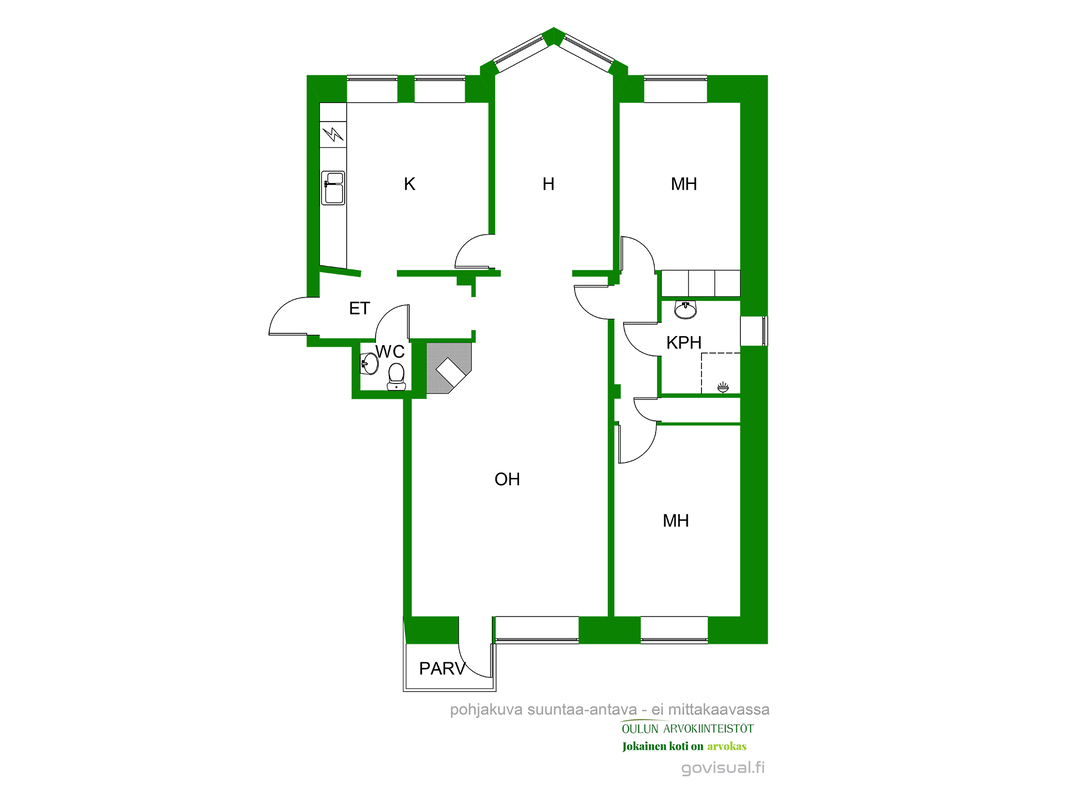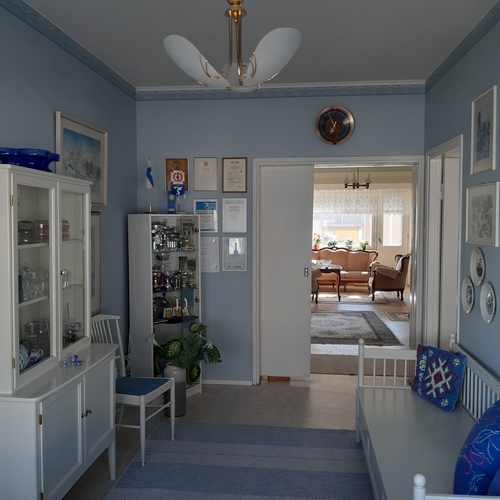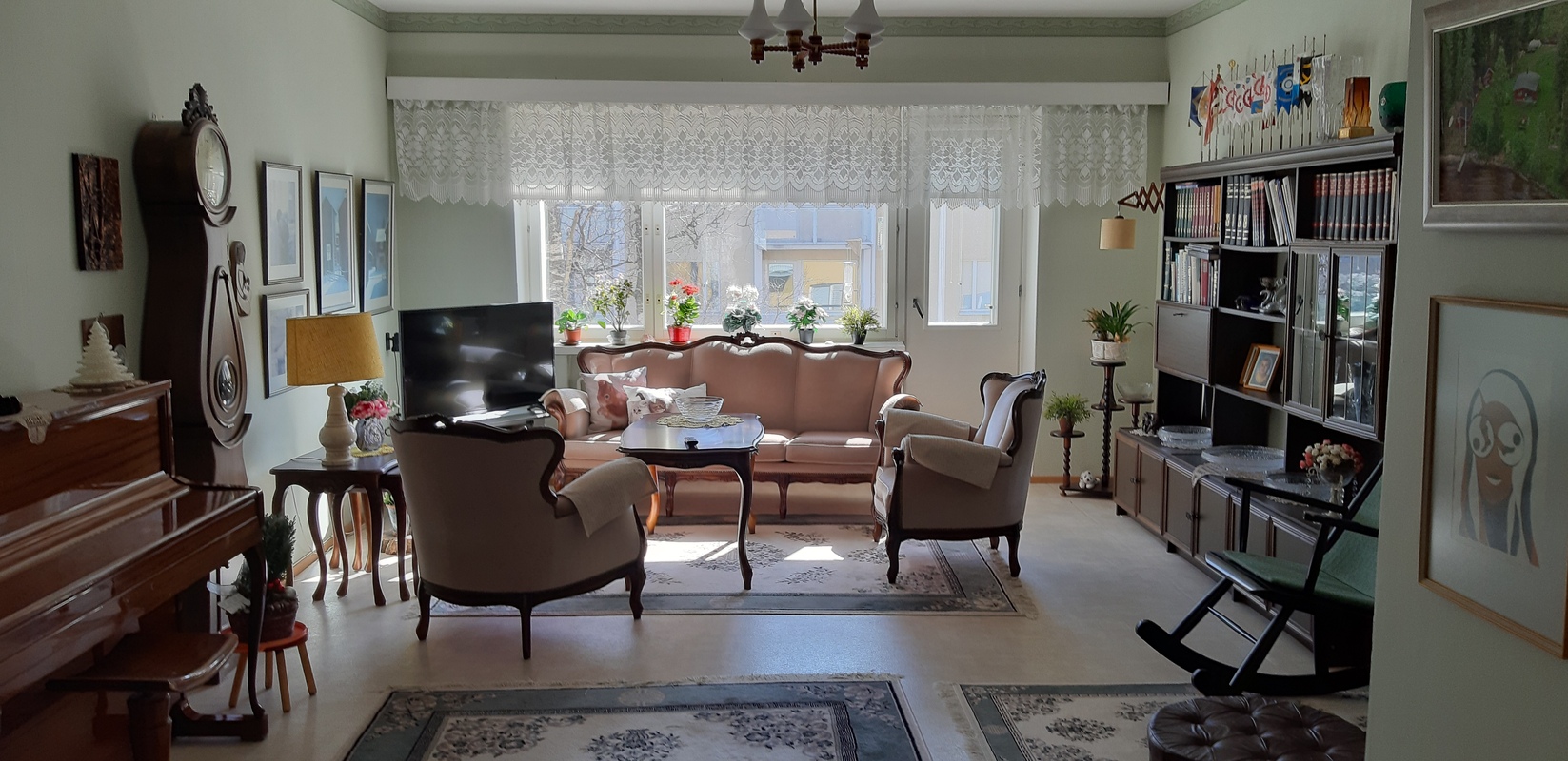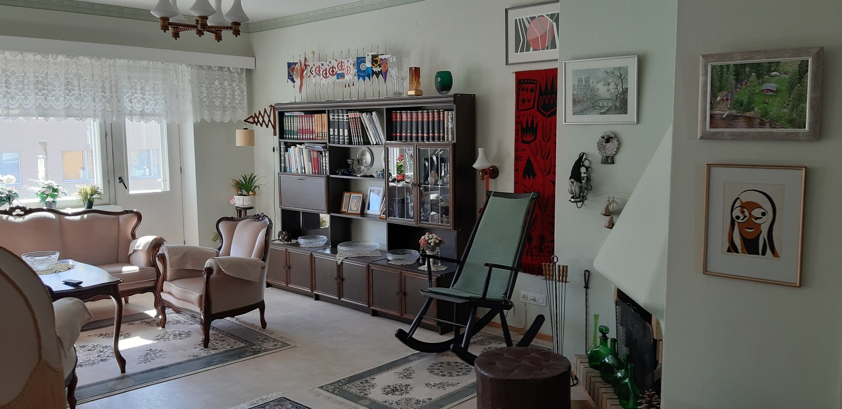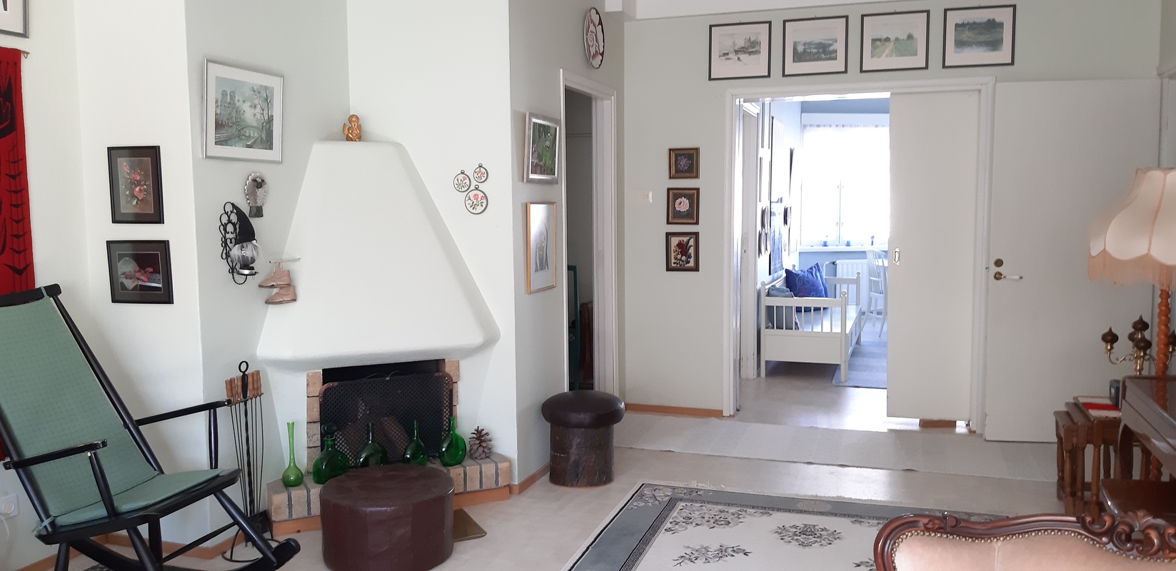Tervetuloa tutustumaan tähän tilavaan, avaraan ja läpitalon olevaan päätyhuoneistoon. Asunnon monista ikkunoista tulvii luonnonvaloa, luoden viihtyisän kokonaisuuden. Vanhat, jykevät ikkunalaudat tuovat tilaan klassista tunnelmaa ja toimivat samalla käytännöllisenä laskutasona tai sisustuselementtinä. Olohuoneesta löytyy tunnelmallinen avotakka, joka tuo lämpöä ja viihtyisyyttä erityisesti talvipäivinä.