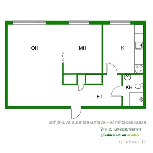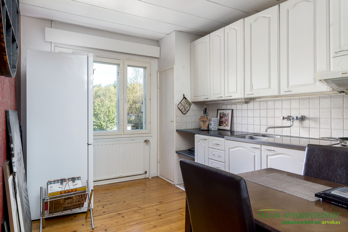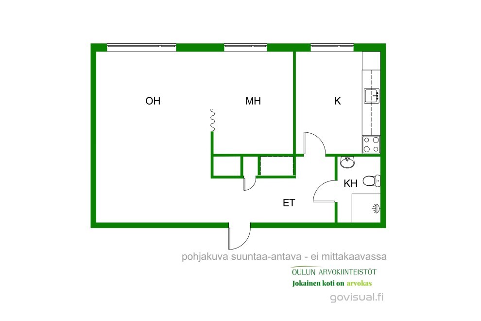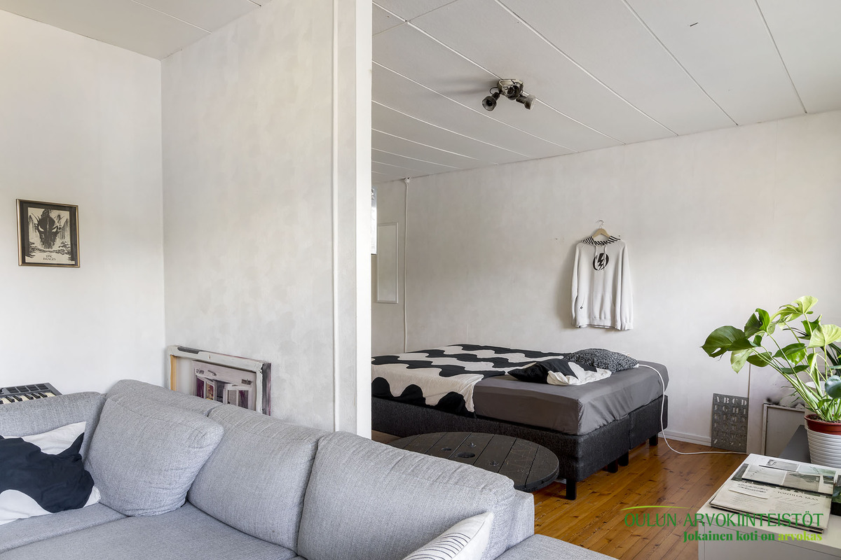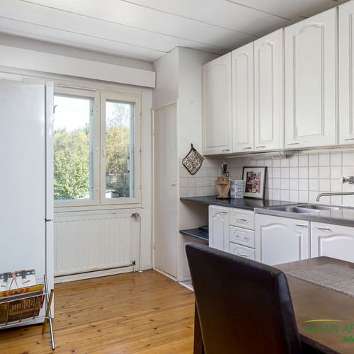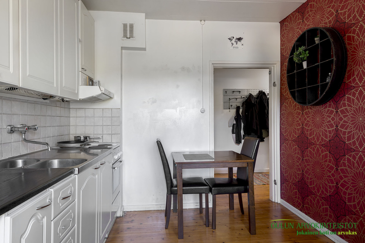 Hyvä pohjaratkaisu, kaksi huonetta + keittiö, jossa riittävästi tilaa ja säilytystä. Asunto on siistissä kunnossa, ja jo pientä nikkarointia harrastamalla saat sen näyttämään juuri omannäköiseltäsi.