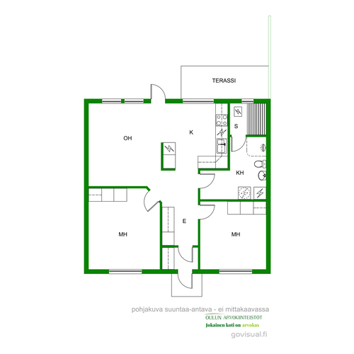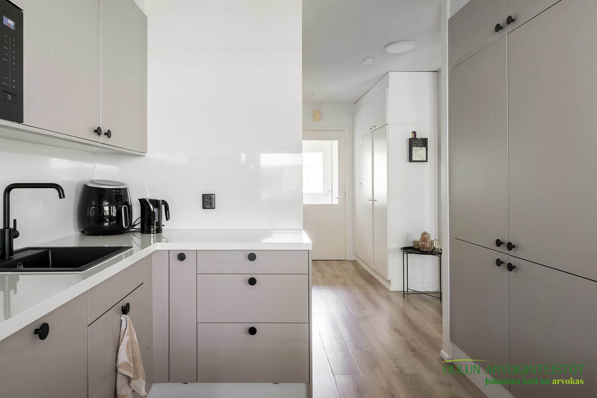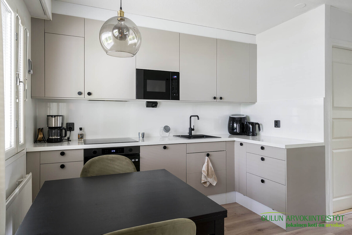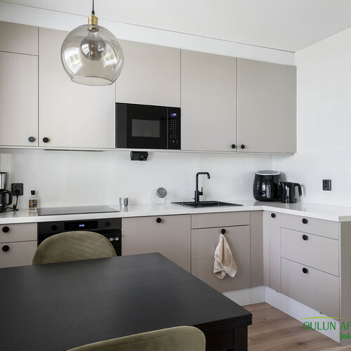 Varusteet: jääkaappipakastin, astianpesukone, astianpesukoneliitäntä, lattiakaivo, mikroaaltouuni, induktioliesi