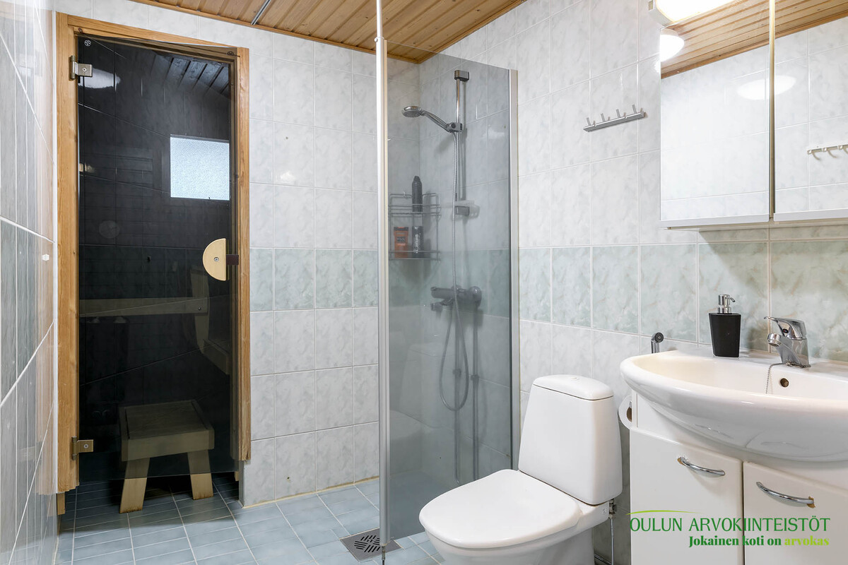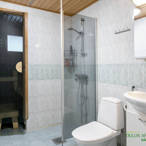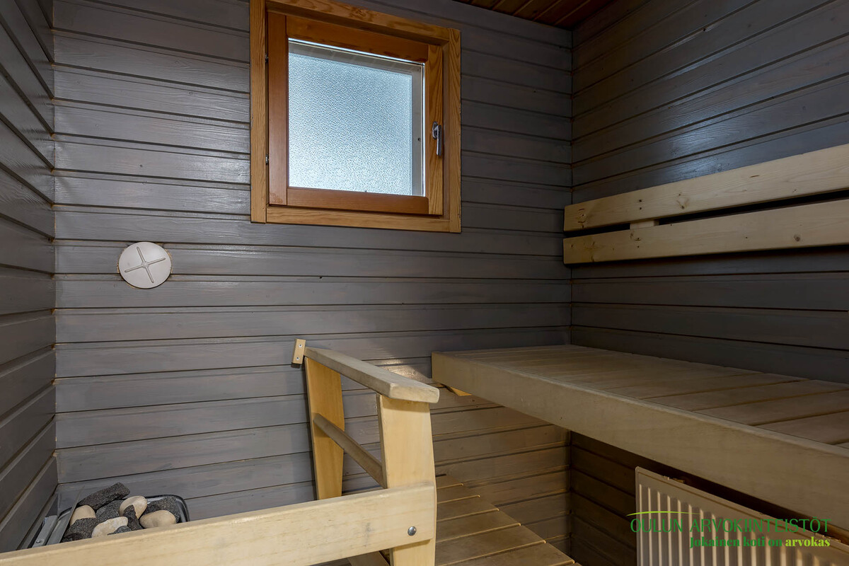 Varusteet: sähkökiuas, lattiakaivo, ikkuna ulos