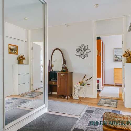 Tämä läpitalon huoneisto tarjoaa selkeän ja toimivan pohjaratkaisun. Kosteat tilat remontoitu 2020. Eteisen kaapistot uusittu korkeiksi peiliovikaapeiksi. Ne tuovat eteiseen säilytystilan lisäksi avaruuden tuntua ja valoisuutta. Asunnon tilankäyttö on harkittua, mikä mahdollistaa monipuoliset sisustusratkaisut omien mieltymystesi mukaan. Kodin tunnelma on levollinen ja kutsuva, mikä tekee siitä täydellisen paikan rauhoittumiseen kiireisen päivän jälkeen.