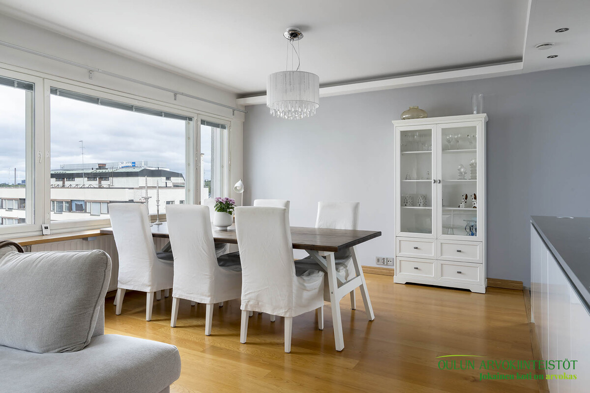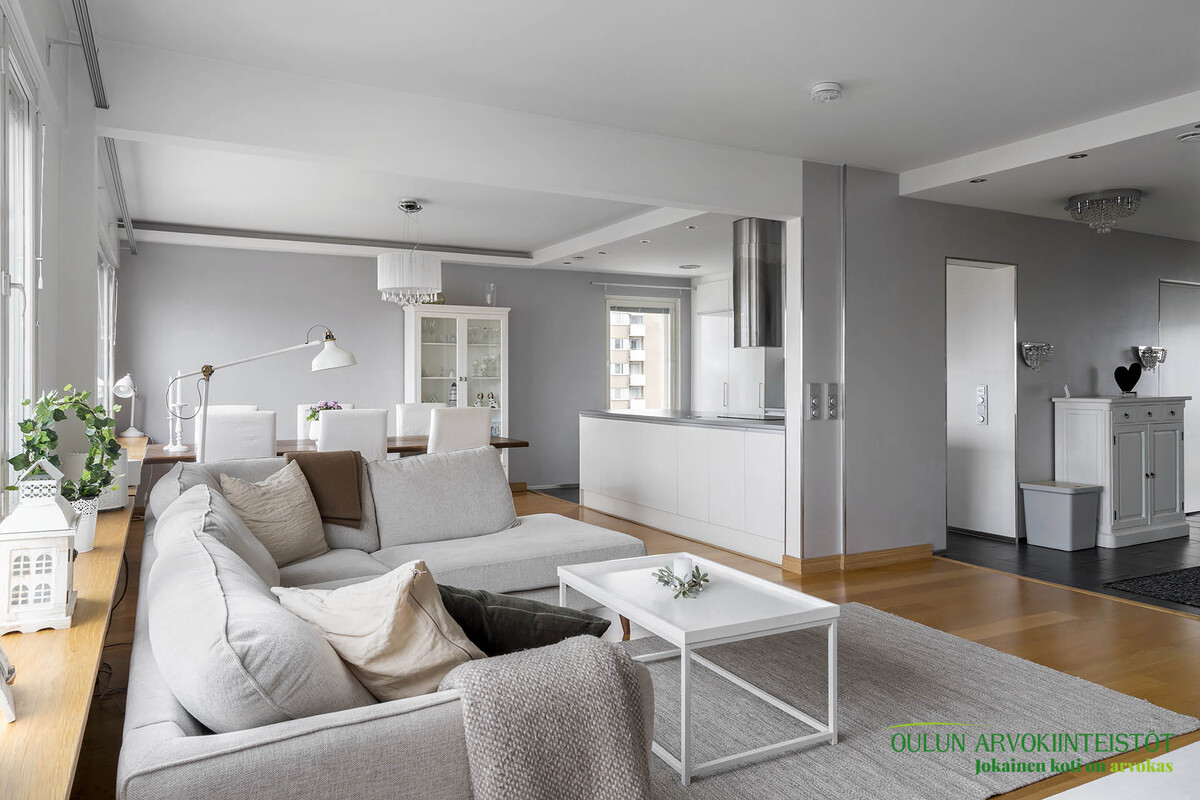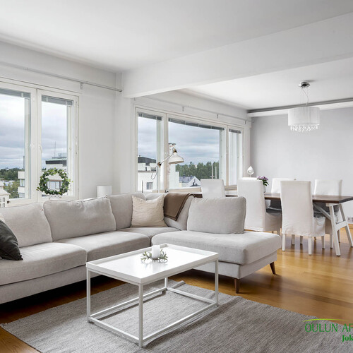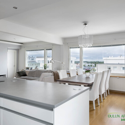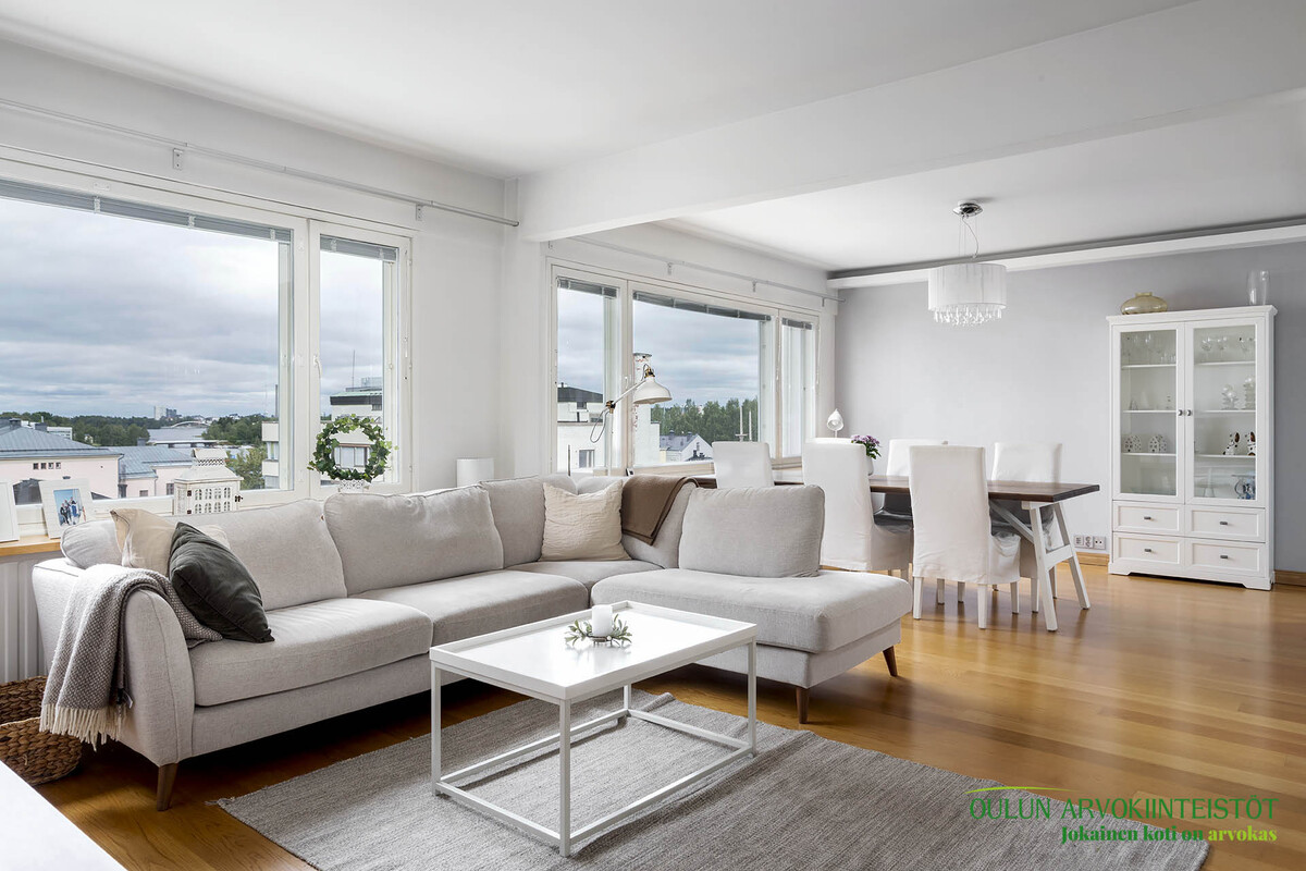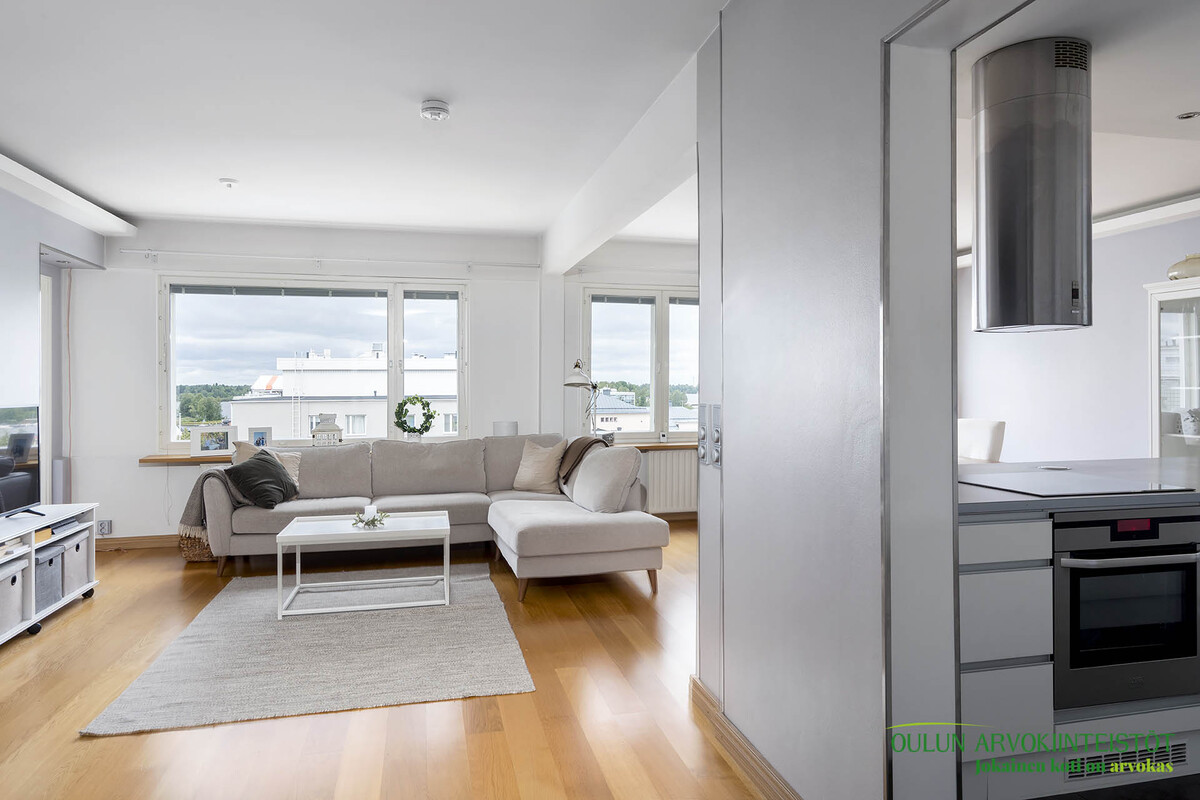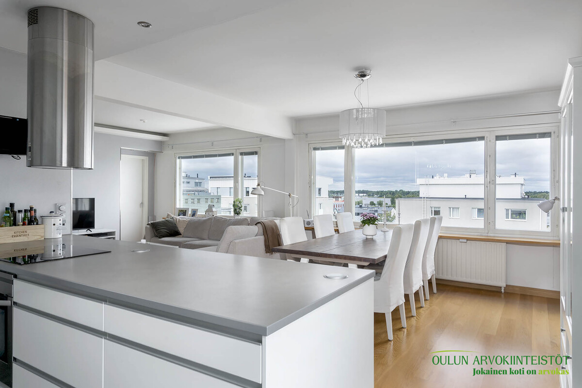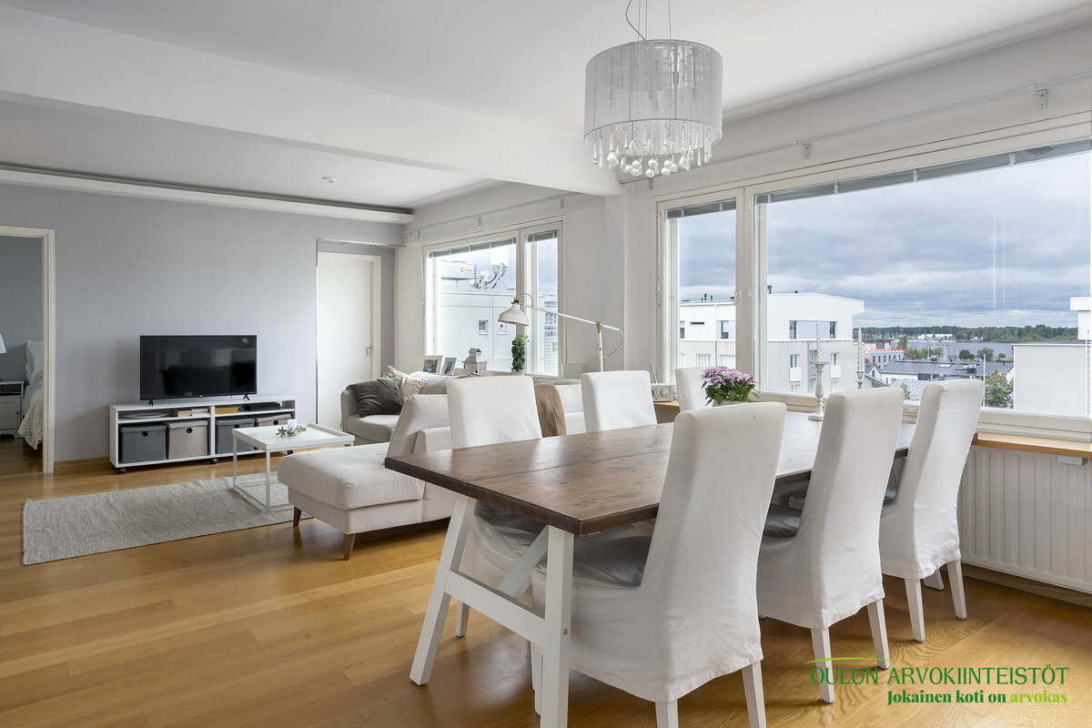 Ylimmän kerroksen koti merinäkymillä – modernia mukavuutta Oulun keskustassa!