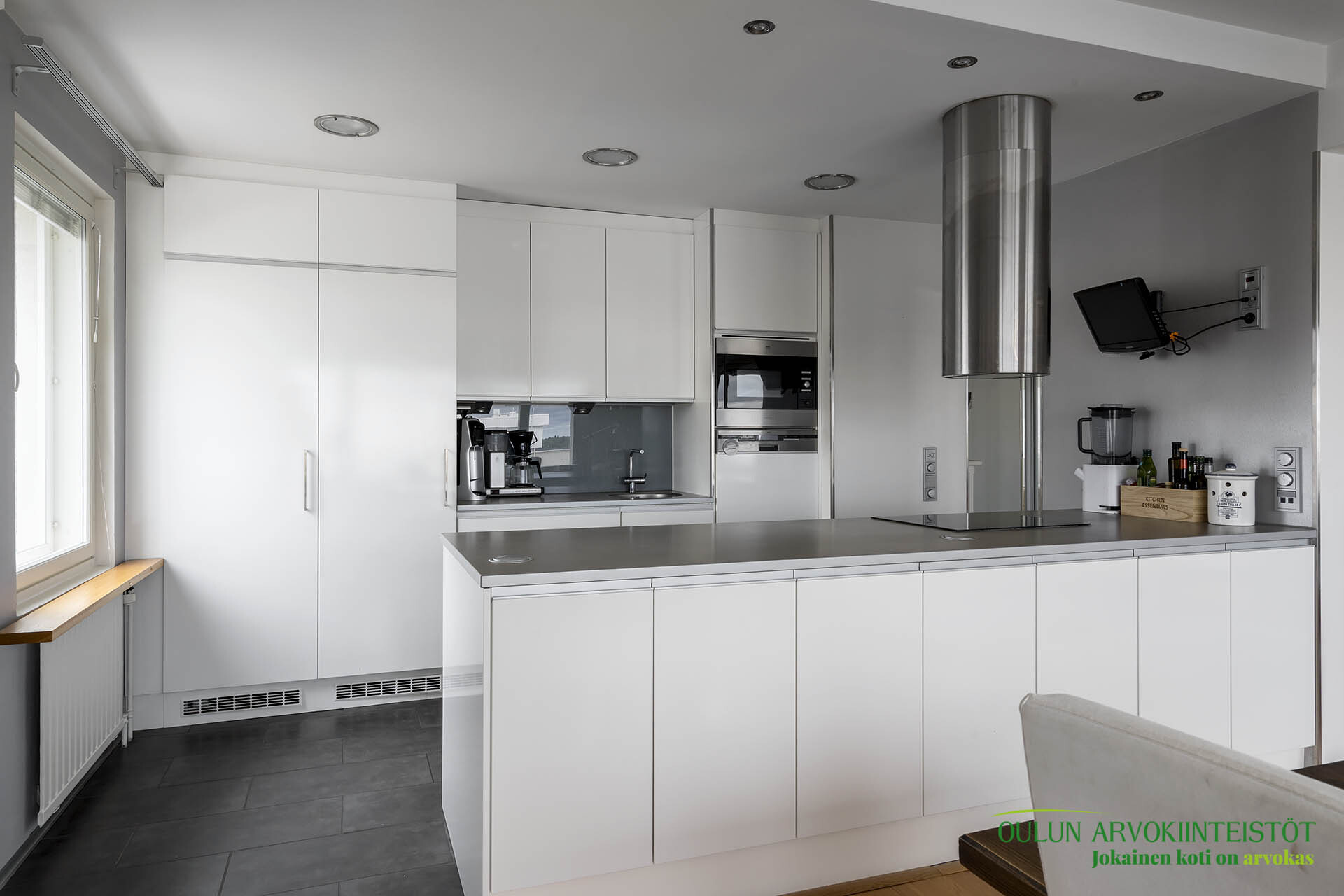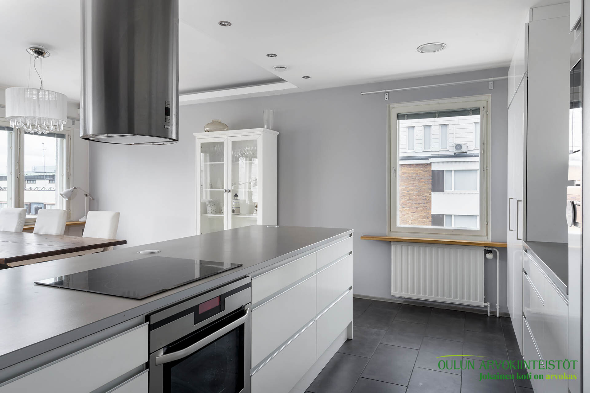 -Keittiö integroiduilla kodinkoneilla, induktioliesi ja pyrolyysi-uuni
