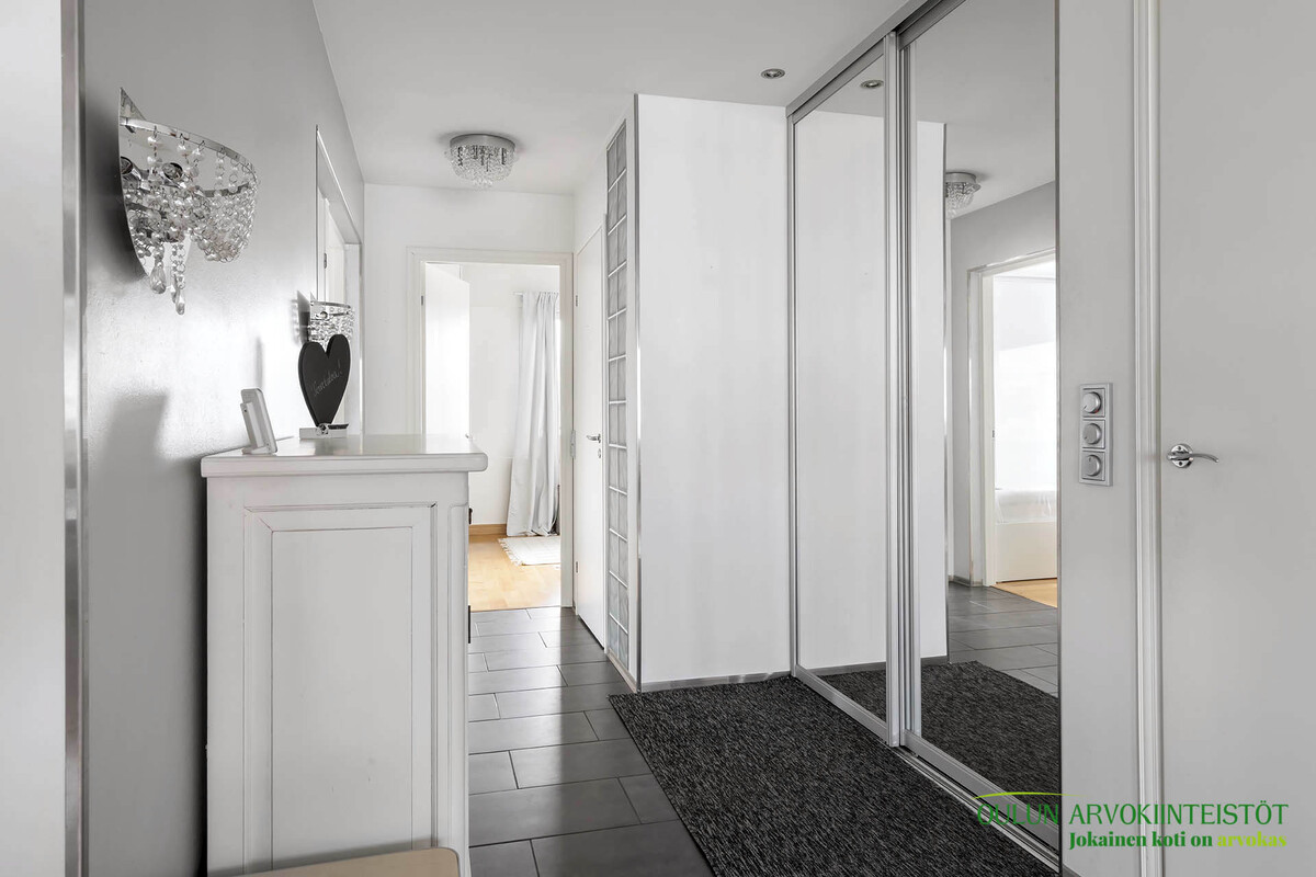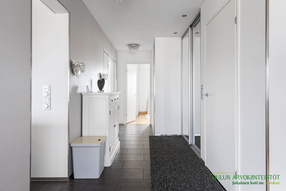Pintamateriaalit: Asunnon huoneet ja sisämateriaalit edustavat hyvää suunnittelua ja laadukkaiden materiaalien käyttöä sekä asumismukavuutta.