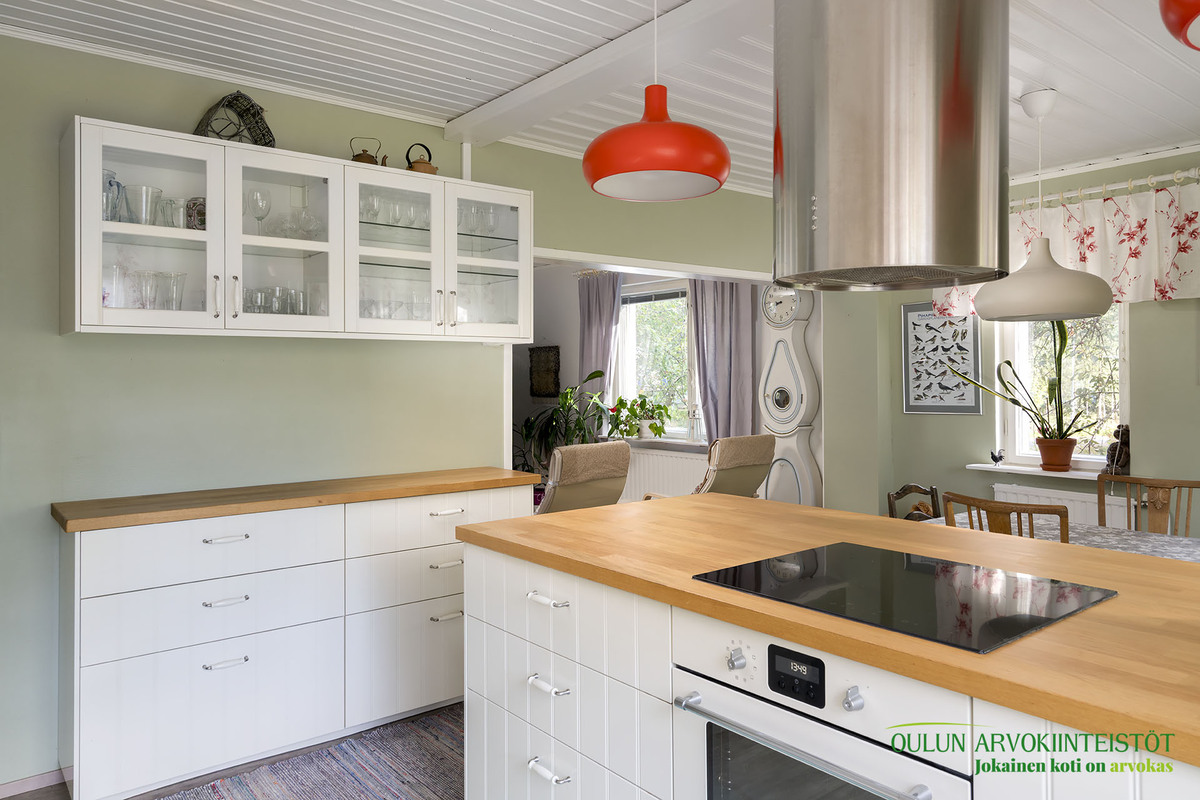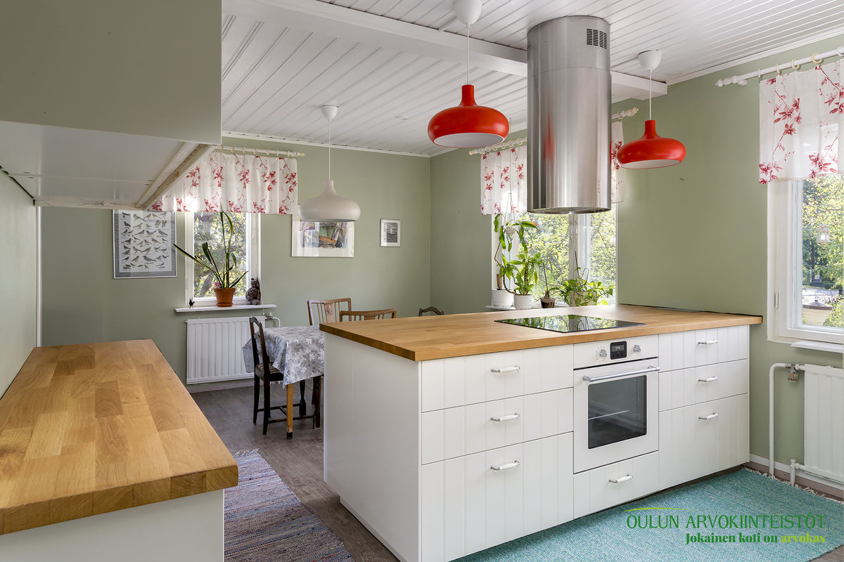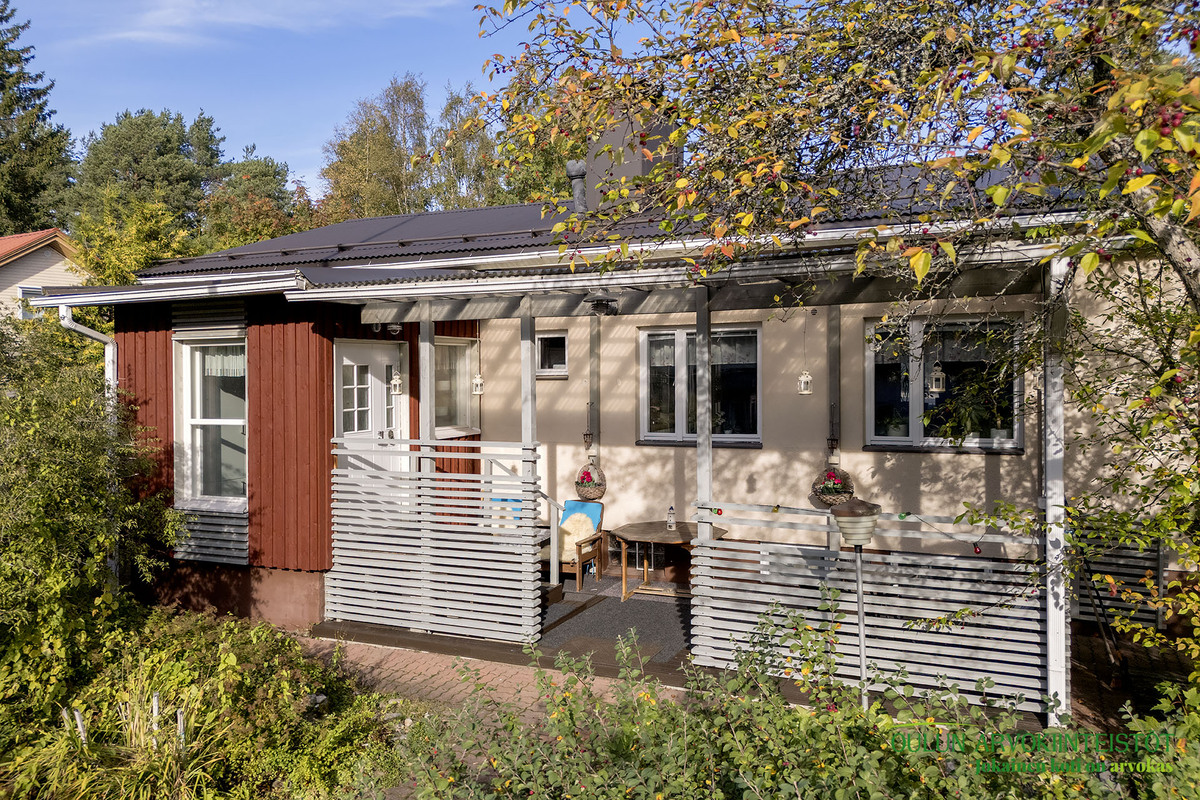 Tämä vuonna 1962 valmistunut täyskivitalo on rakennettu jykevälle perustalle ja on kokenut vuosien varrella kattavia päivityksiä. Asuintilaa on reilut 122,50 neliötä ja lisäksi 222 neliötä muita tiloja, joihin kuuluu mm. kellaritiloja ja varastotilaa. Talosta löytyy kolme tilavaa makuuhuonetta, joissa on laadukas pyökkilautaparketti. Keittiössä on moderni varustelu, tammiviiluiset työtasot ja tyylikäs ilme.
