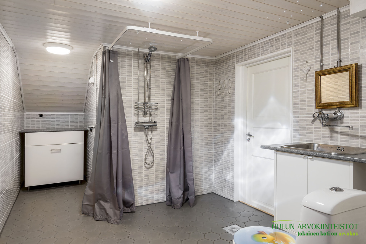 Asuinkerroksen kylpyhuoneesta löytyy suihku, WC, kylpyhuonekaapistot sekä paikka pyykkihuollolle ja kokonaisuuden viimeistelee lattialämmitys. Alakerrasta löytyy lisäksi täysin vuonna 2024 uusittu saunaosasto sekä toinen kylpyhuone, joka tarjoaa mahtavan paikan rentoutumiselle. Talossa on vesikiertoinen patterilämmitys, ja kosteat tilat sekä osa alakerran huoneista on varustettu vesikiertoisella tai sähköisellä lattialämmityksellä.