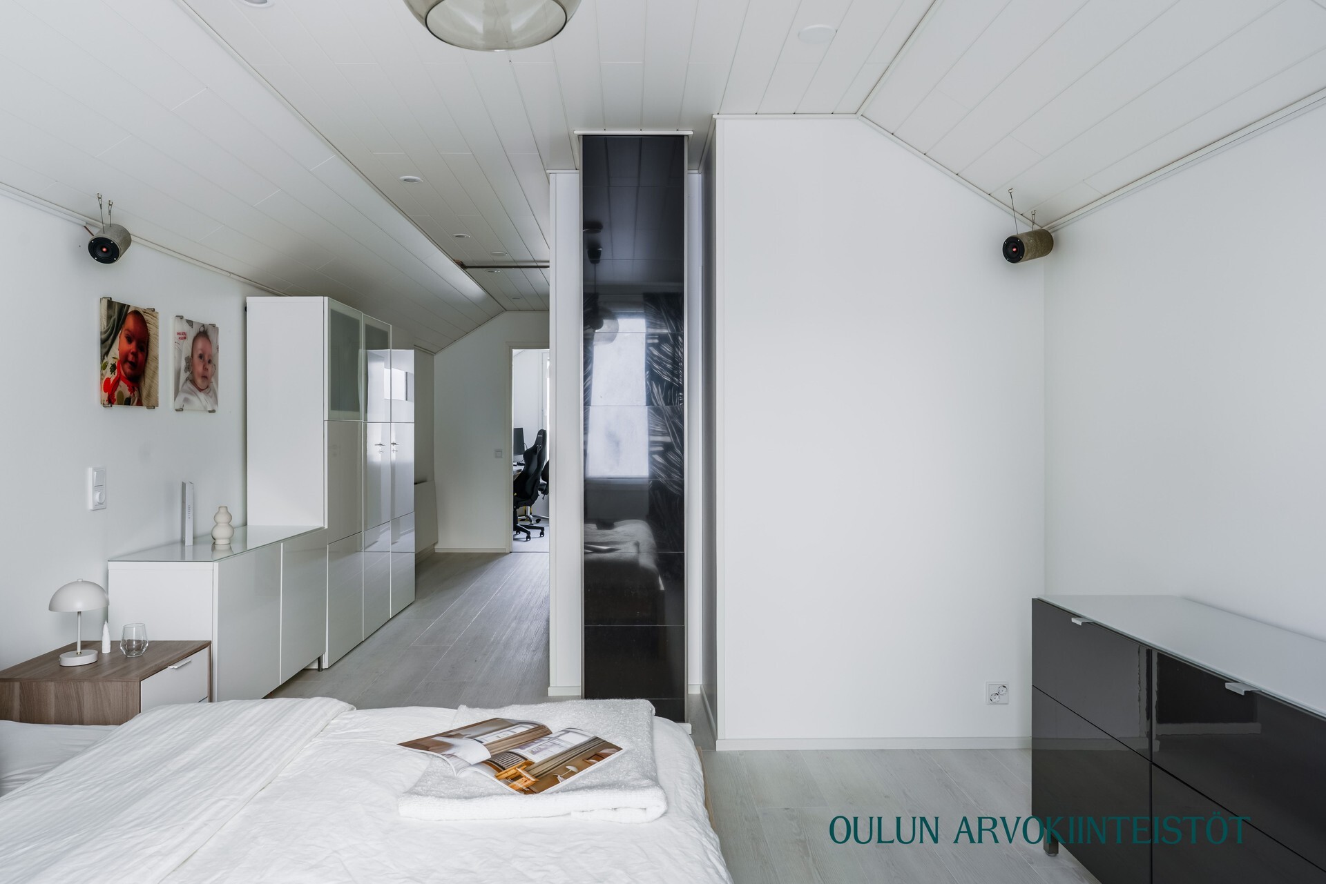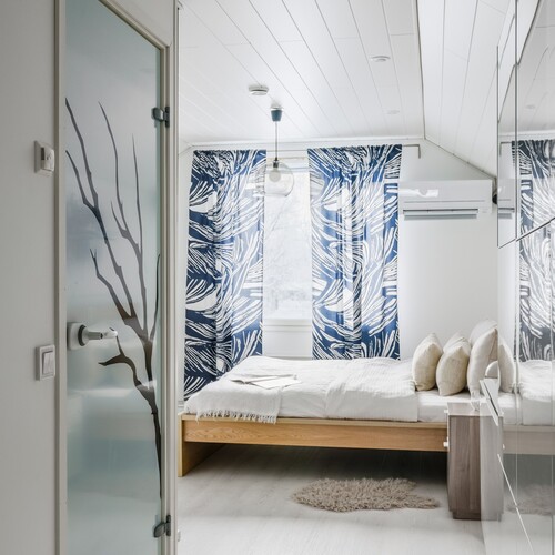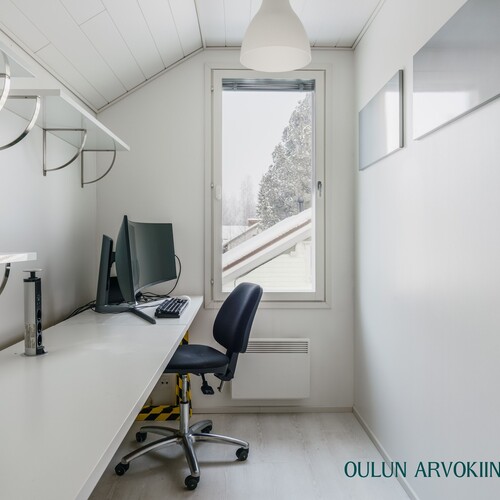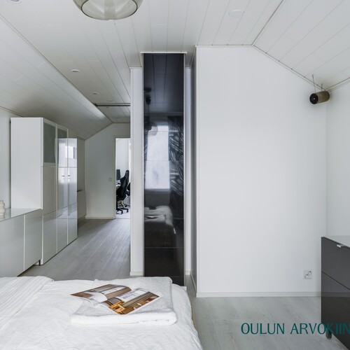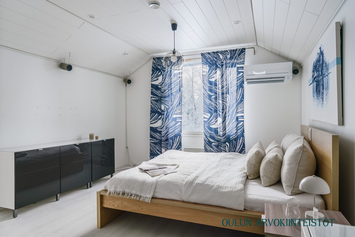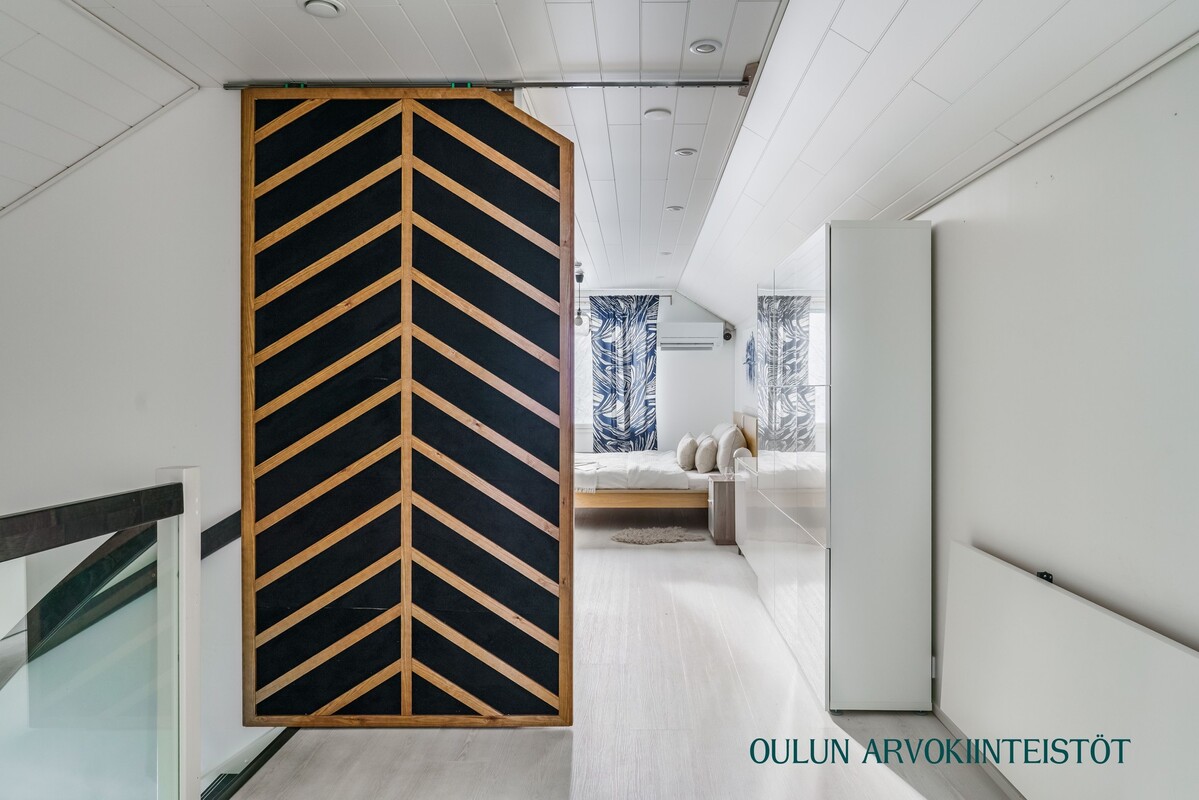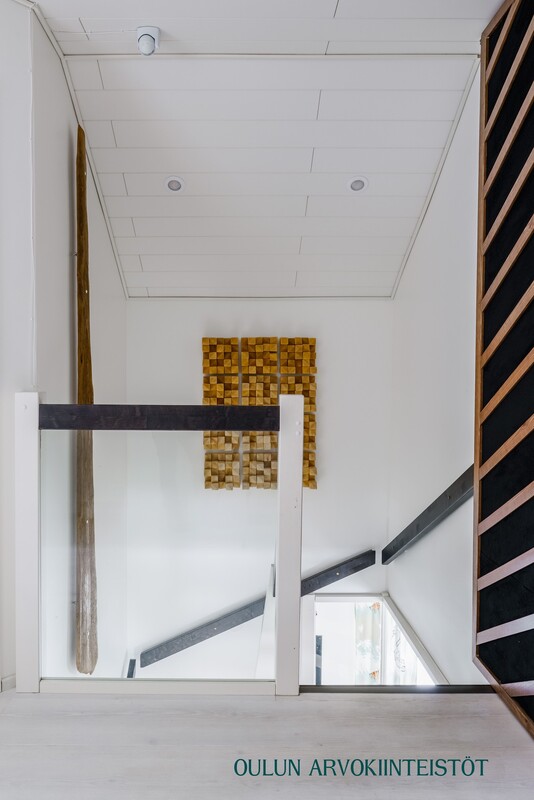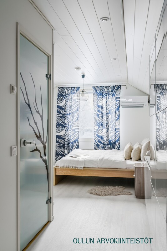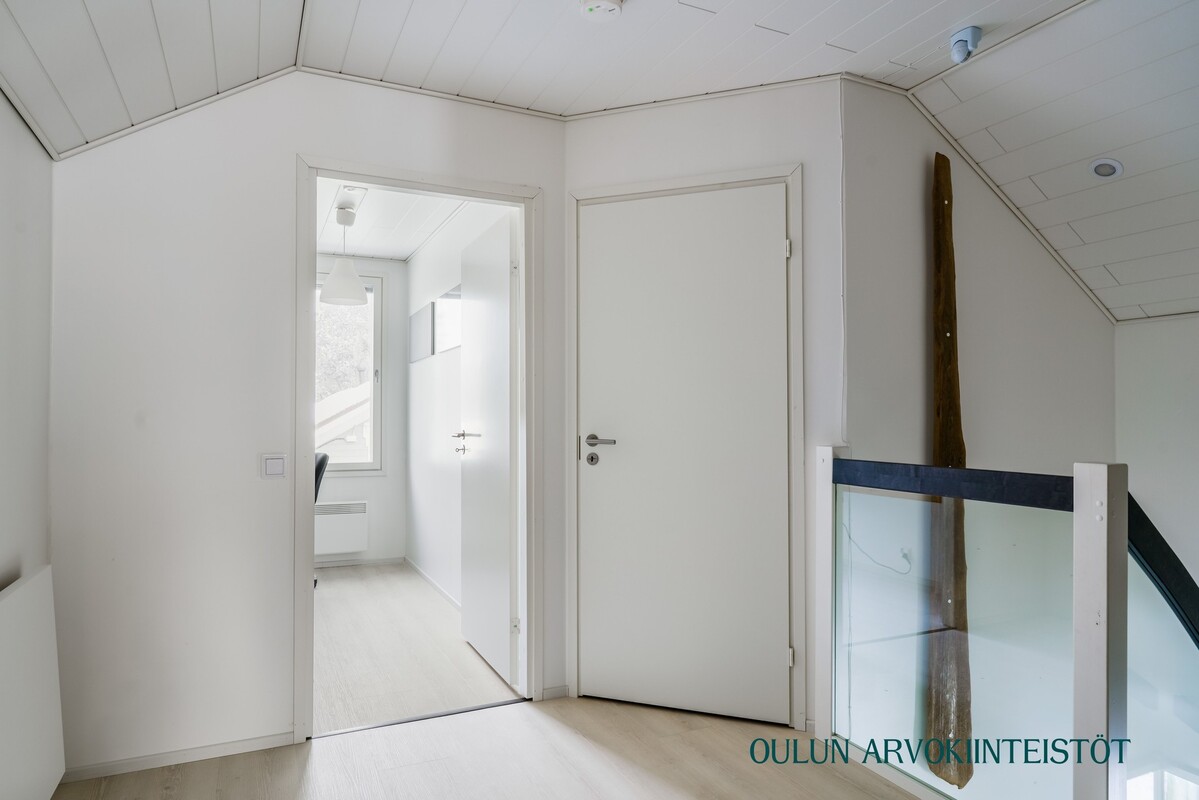 Vuonna 2017 rakennettu yläkerta tuo kotiin lisää tilaa ja joustavuutta. Yläkerrassa sijaitsee suuri makuuhuone sekä kylpyhuone, jossa on suihku, wc ja kylpyamme. Lisäksi tiloissa on työhuone ja varasto, joiden tilalle on helposti toteutettavissa toinen makuuhuone tarpeen mukaan.