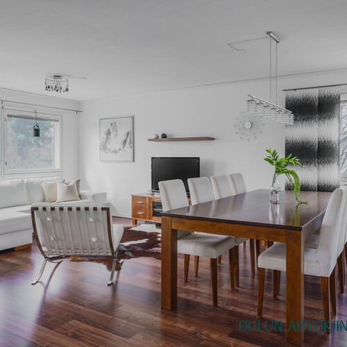 Avara ja valoisa olohuone muodostaa kodin viihtyisän sydämen. Suuret ikkunat tuovat runsaasti luonnonvaloa ja tilaan mahtuu luontevasti sekä oleskelu- että ruokailuryhmä. Selkeä pohjaratkaisu ja harmoninen värimaailma tekevät tilasta helposti sisustettavan. Olohuoneesta on käynti parvekkeelle, mikä tuo lisää tilaa oleskeluun ja yhdistää sisä- ja ulkotilan sujuvasti.