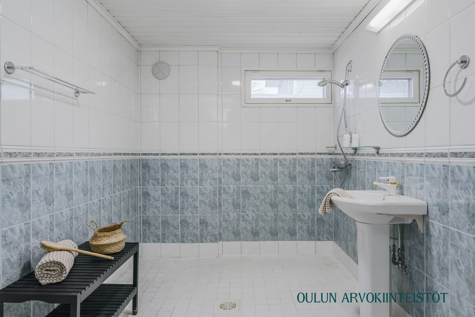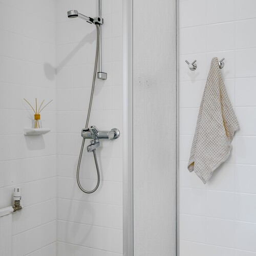 Varusteet: suihku, peili, kiinteät valaisimet, kuivauskaappi, lattialämmitys