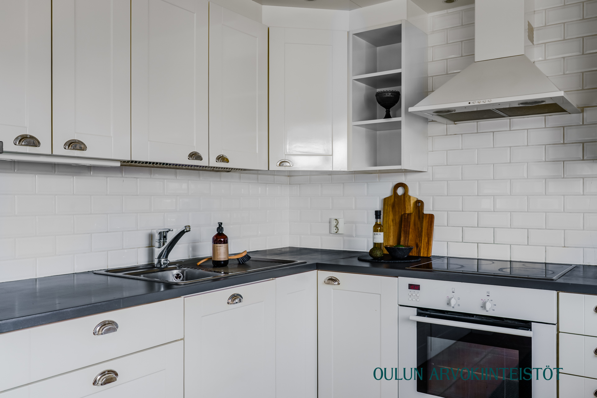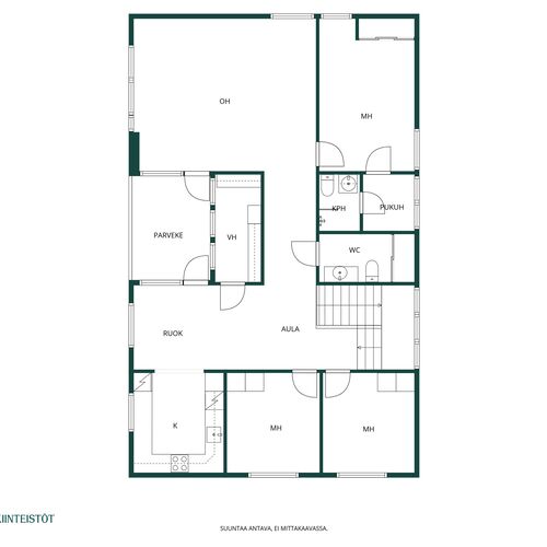Varusteet: jääkaappipakastin, induktioliesi, erillisuuni, astianpesukone, kiinteät valaisimet, liesituuletin hormilla