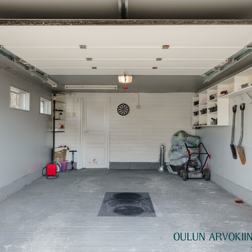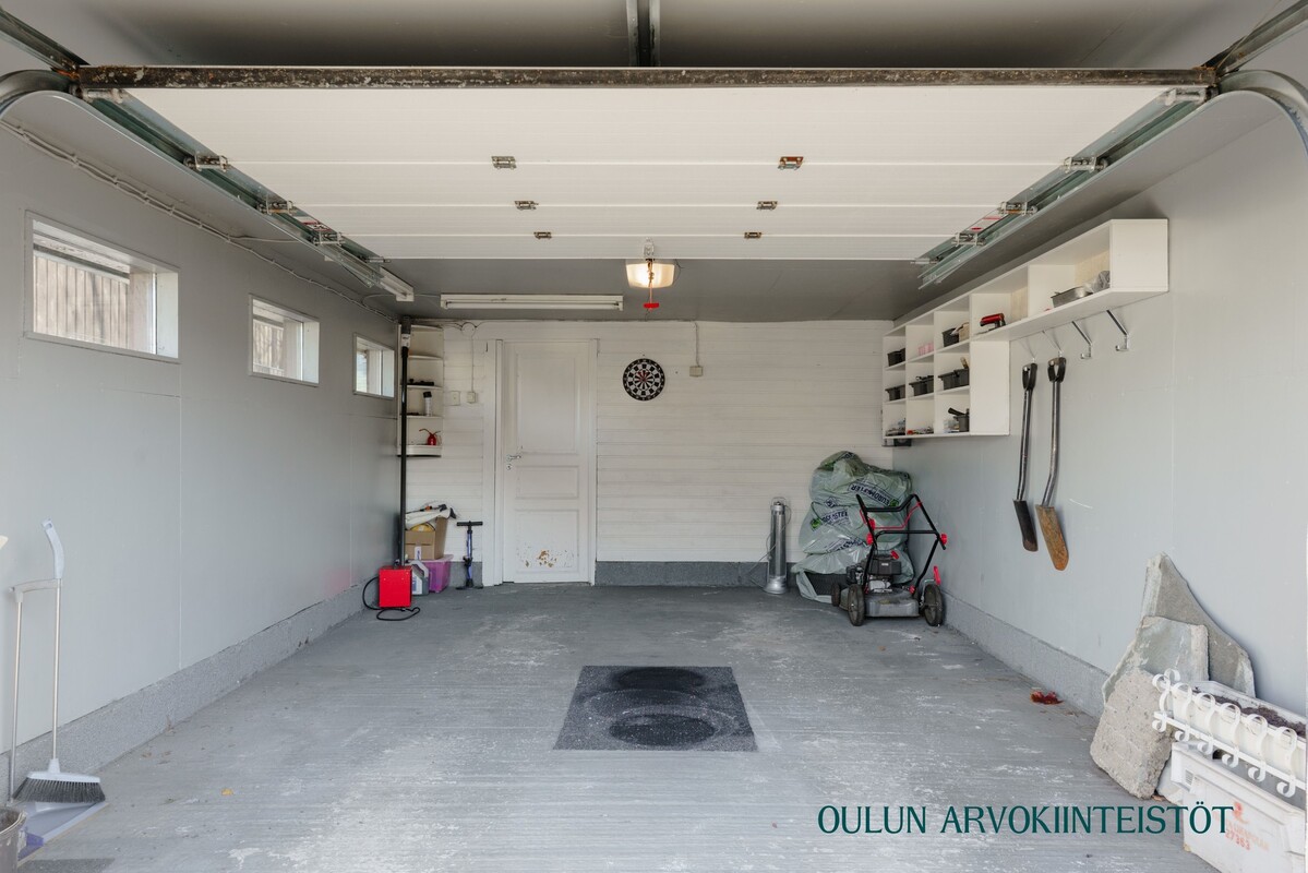 Autotalli eristetty, sähköinen nosto-ovi.