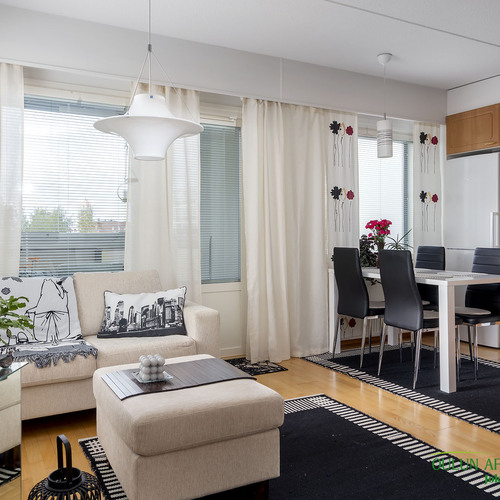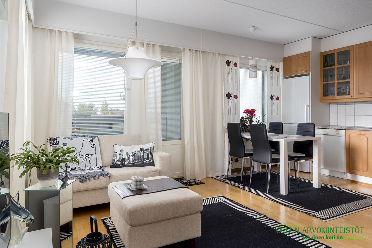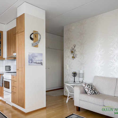 Tämä kodikas kaksio on hyvässä kunnossa ja sen selkeä pohjaratkaisu tekee kodista toimivan ja helposti sisustettavan. Iso makuuhuone antaa tilaa sekä levollisille yöunille että työpisteelle, jos etäpäivät ovat osa arkeasi.