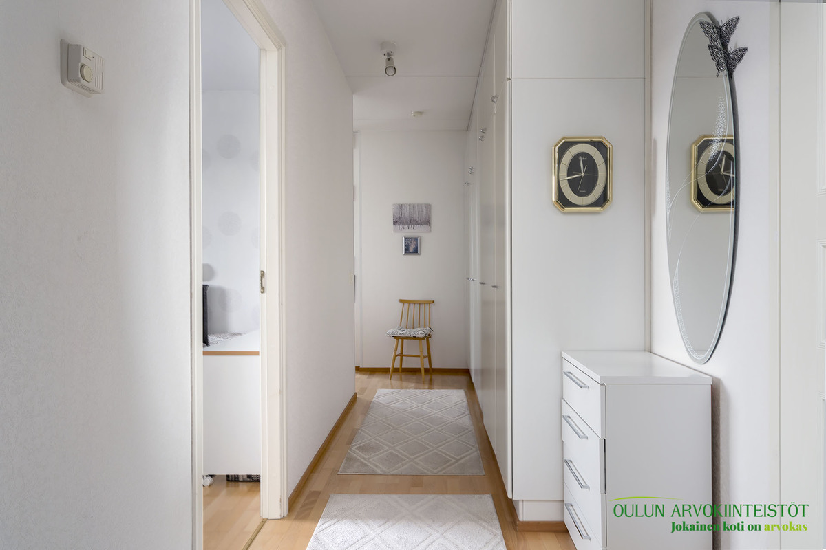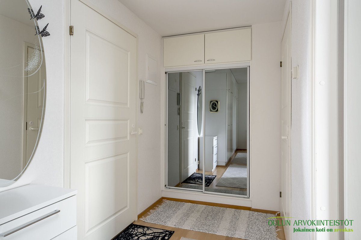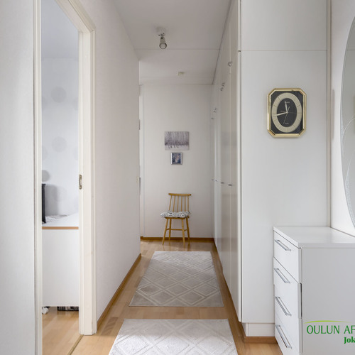 Kun nouset tämän kodin ylimpään, kuudenteen kerrokseen, vastassa on rauha ja viihtyisyys. Jo eteisessä huomaat käytännöllisyyden. Runsaat kaapistot tarjoavat reilusti säilytystilaa ja pitävät arjen siistinä.