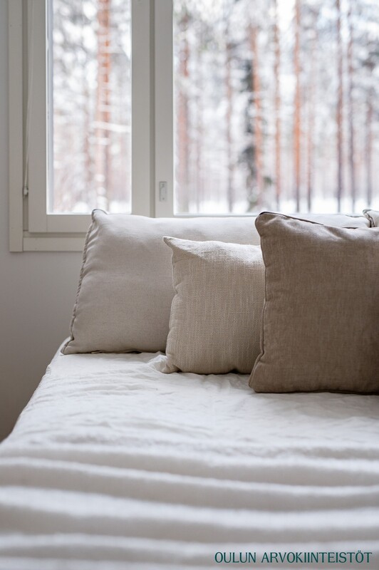 Kodissa on kaksi makuuhuonetta, joista päämakuuhuoneen yhteydessä on oma vaatehuone. Huoneet ovat valoisia ja selkeälinjaisia ja suuret ikkunat tuovat kauniisti päivänvalon sisään.