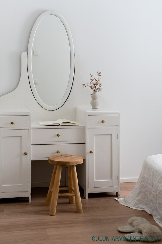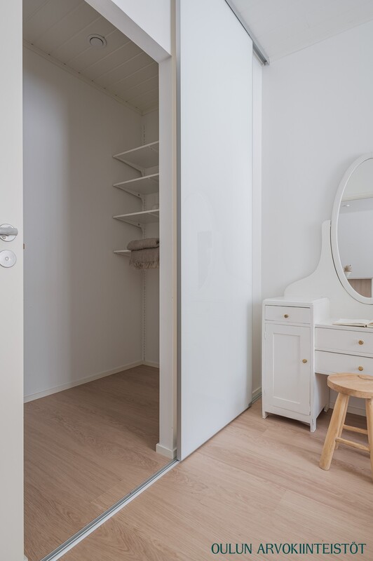 Päämakuuhuoneen yhteydessä on tilava vaatehuone, joka tuo arkeen käytännöllisyyttä ja runsaasti säilytystilaa. Huoneeseen mahtuu hyvin parisänky sekä lisäkalusteita ilman, että tila tuntuu ahtaalta.