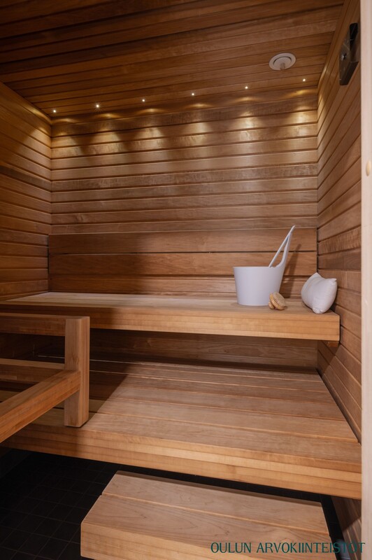 Varusteet: sähkökiuas, lattialämmitys, LED-valaistus