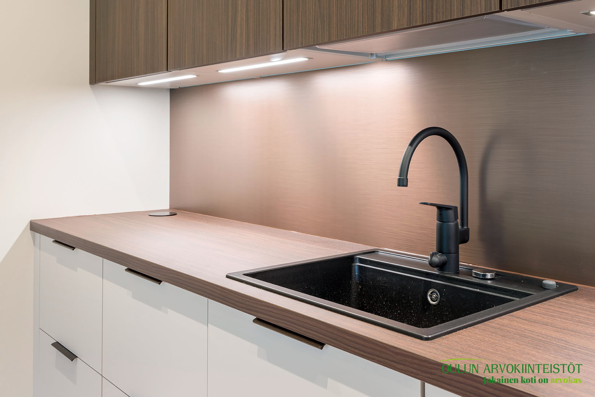 Varusteet: jääkaappi, pakastin, astianpesukone, erillisuuni, integroitu liesi, liesituuletin