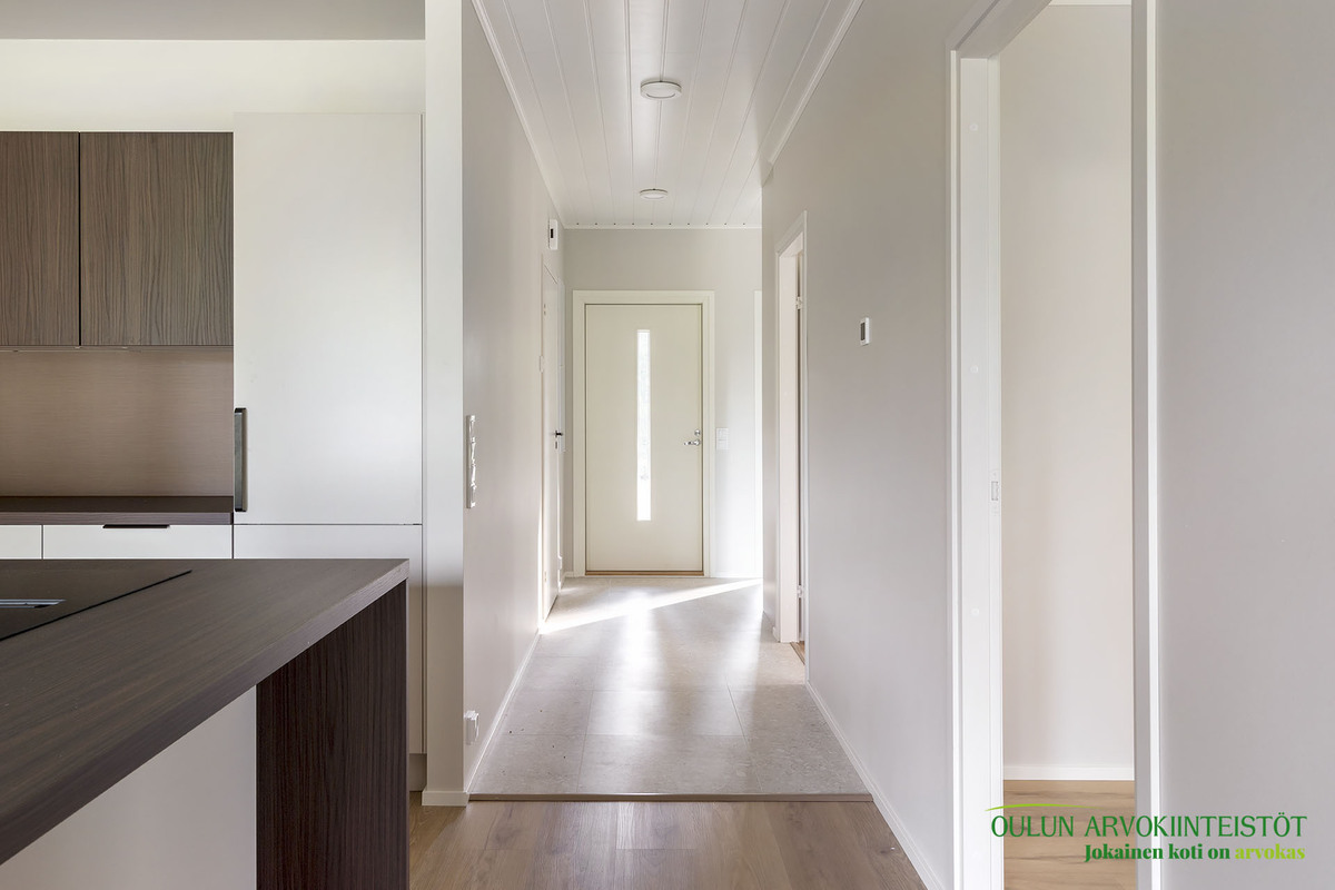 Asuinpinta-ala on 84 m², ja sen tilat on suunniteltu arjen toimivuutta ajatellen. Kodista löytyy kolme makuuhuonetta, tyylikäs avokeittiö saarekkeella, erillisuuni ja integroitu liesituuletin. Väljät ja käytännölliset kodinhoitotilat helpottavat arkea, ja kylpyhuoneen yhteydessä oleva tunnelmallinen sauna kutsuu rentoutumaan. Kodin tilava sisääntuloeteinen tarjoaa runsaasti säilytystilaa kaapistoilla, ja sen kautta on kätevä kulkuyhteys sekä kodinhoitohuoneeseen että kylpyhuoneen ja saunan puolelle. Oleskelutilasta avautuu käynti suurelle, katetulle terassille, joka jatkaa asuinmukavuutta ulkotiloihin.