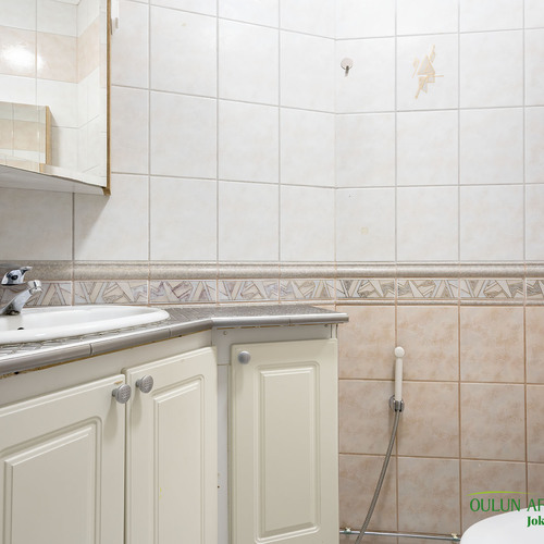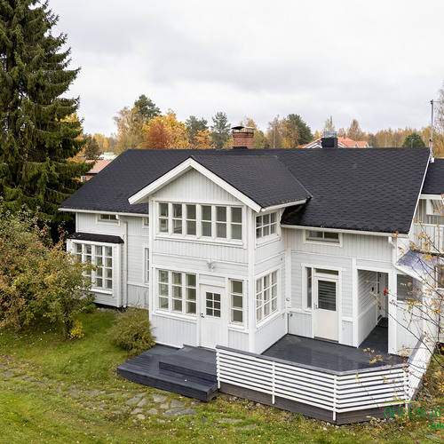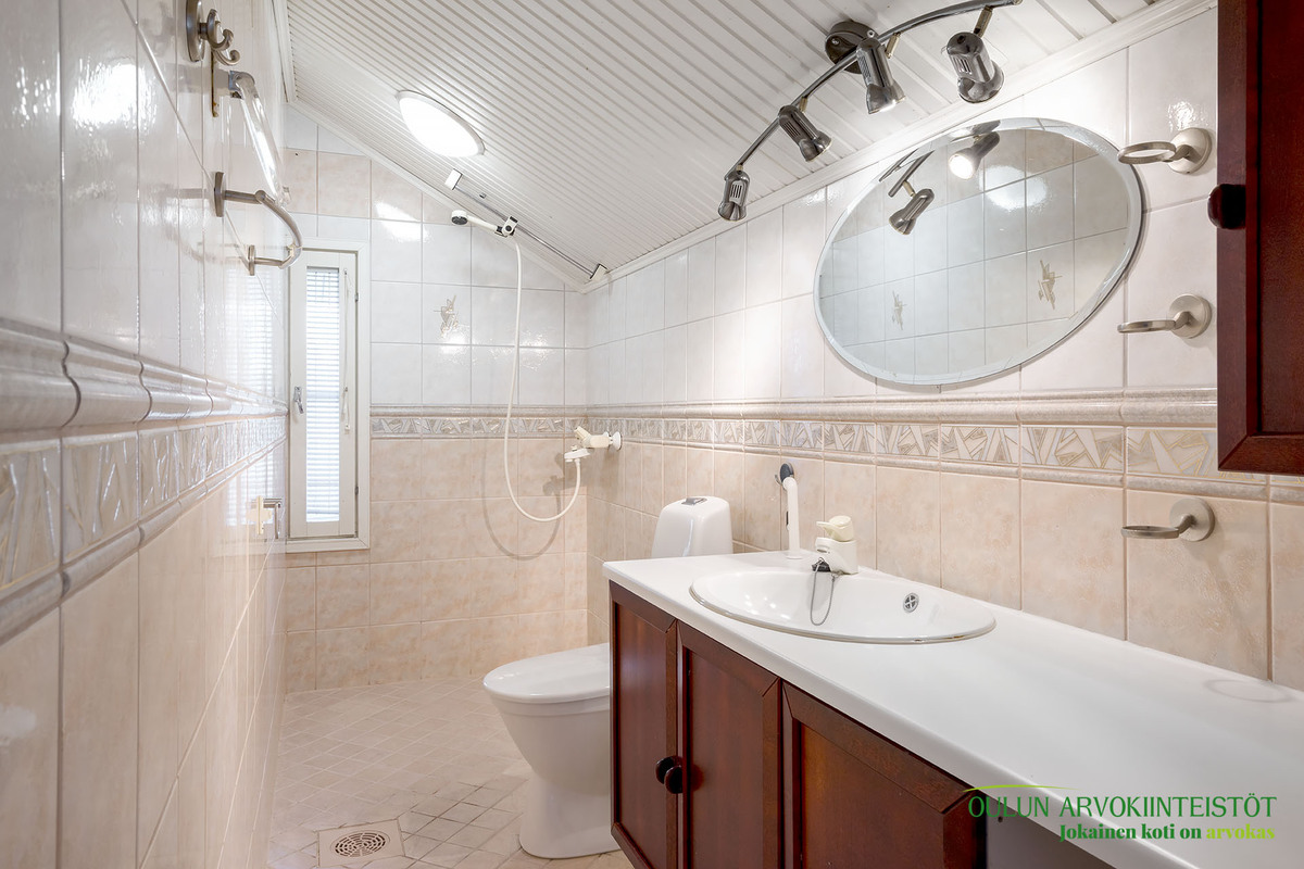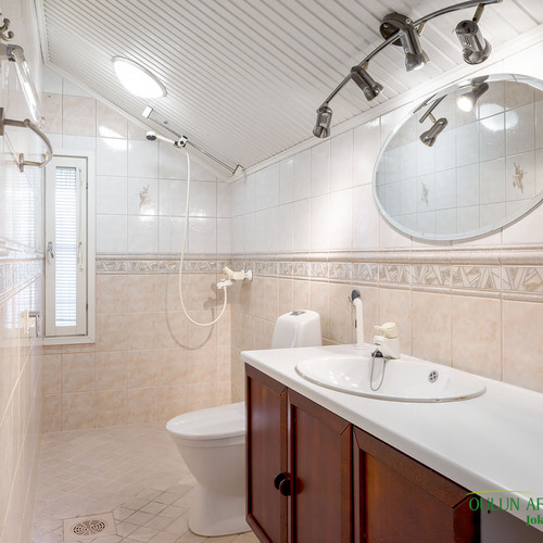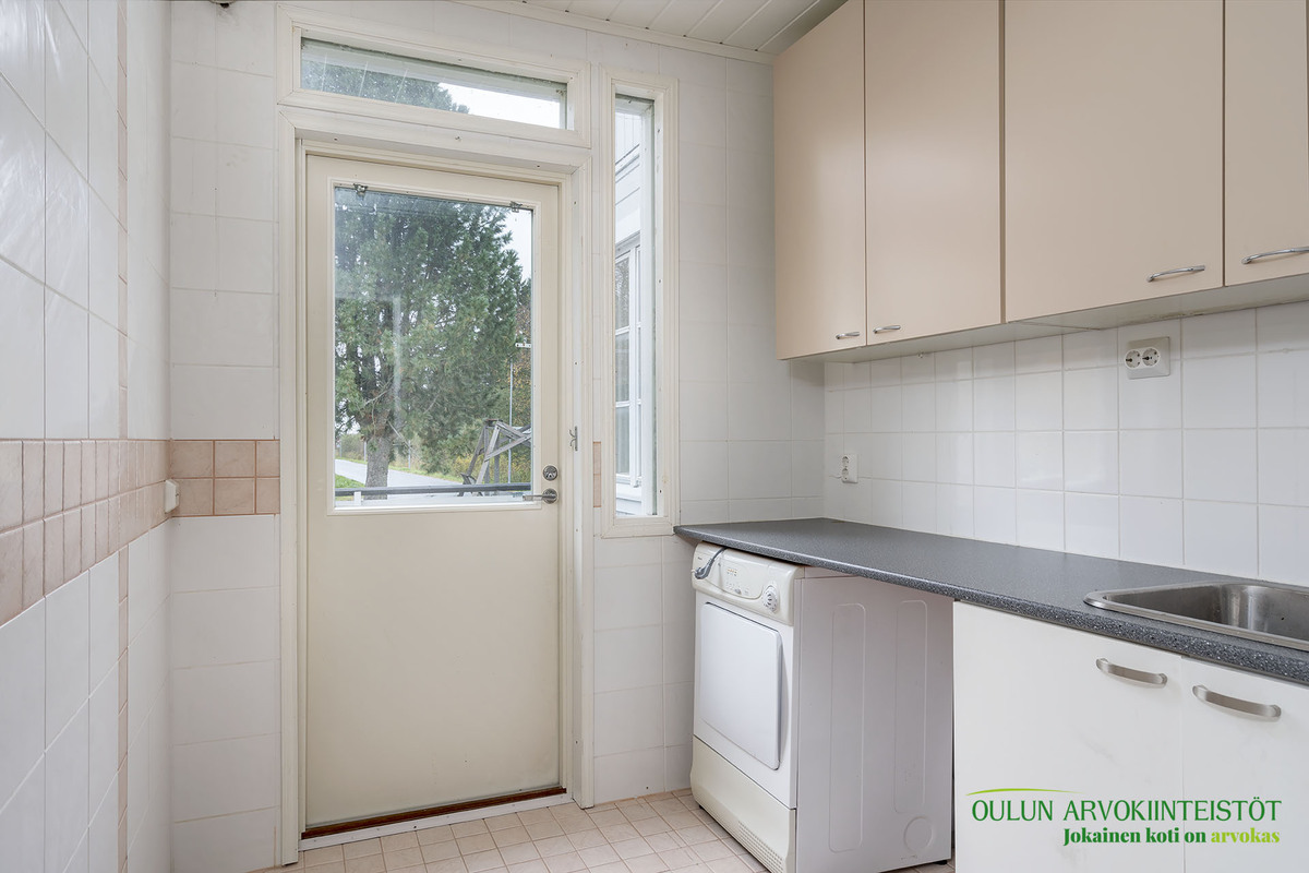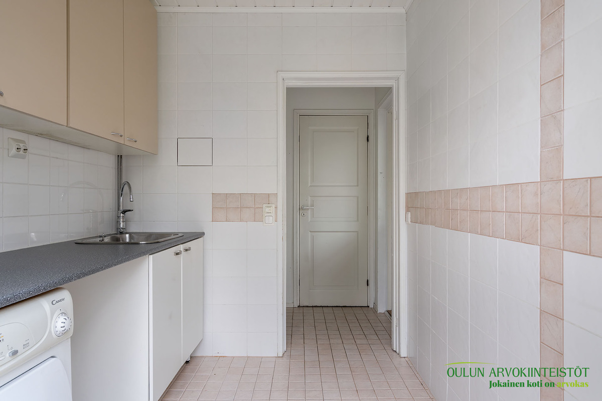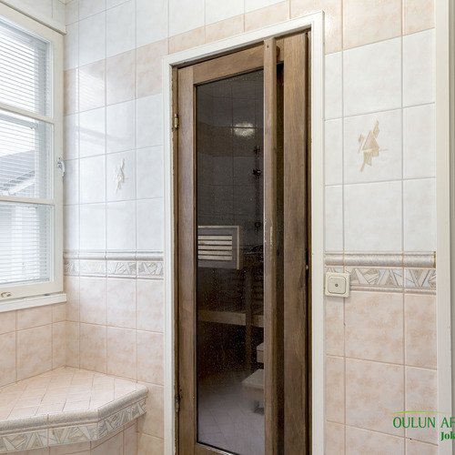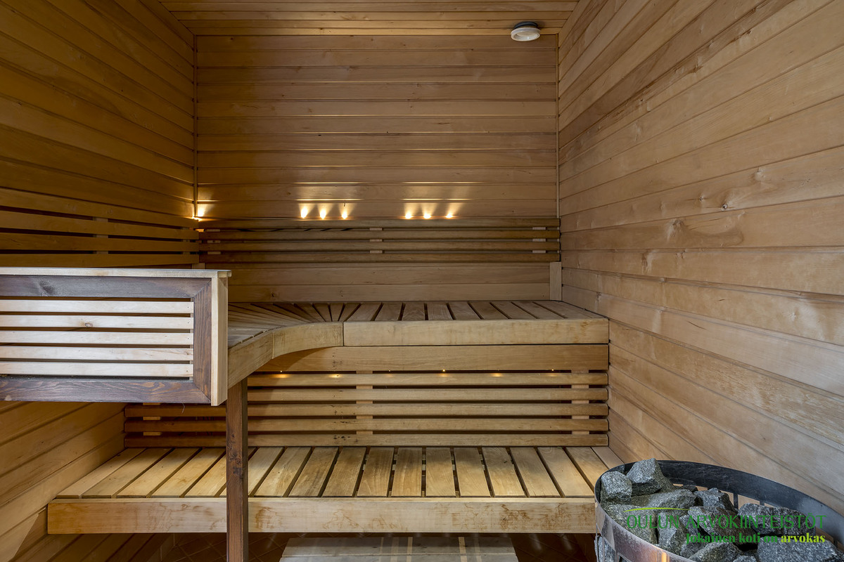 Alakerrasta löytyy lisäksi monikäyttöinen takkahuone, jota voi hyödyntää myös makuuhuoneena. Kodinhoitohuoneessa on oma uloskäynti, uusittu katto ja kaapistot, jotka lisäävät arjen toimivuutta. Pesuhuoneeseen kuljetaan oman pukuhuoneen kautta – kylpytiloissa on kaksi suihkua ja remontoitu sauna kutsuu rentoutumaan.