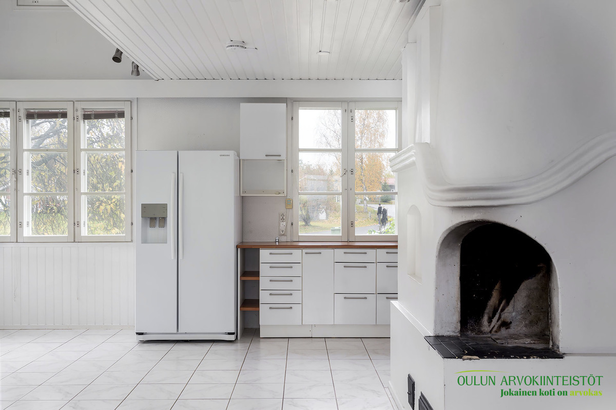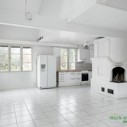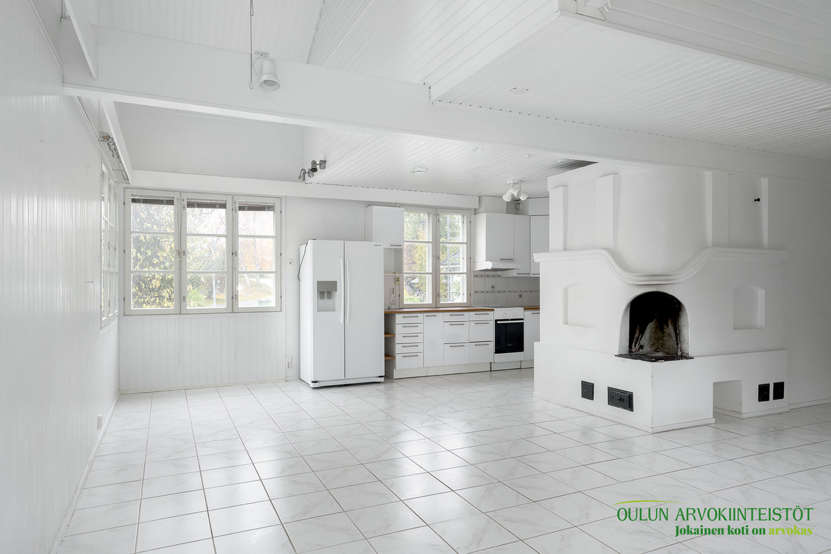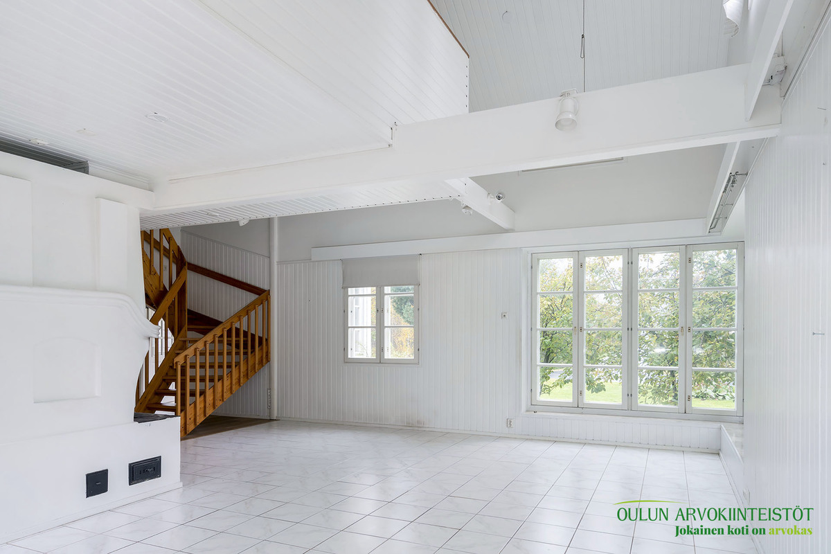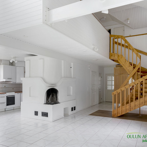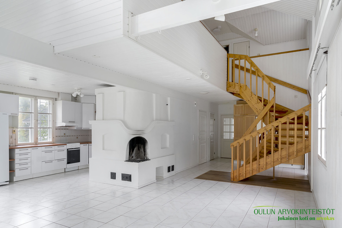 Talossa on avara ja valoisa pohjaratkaisu, jossa keittiö ja olohuone muodostavat yhtenäisen, viihtyisän kokonaisuuden. Olohuone hurmaa korkealla huonetilallaan sekä näyttävällä, massiivisella takka-/leivinuunilla, joka luo lämpöä ja tunnelmaa.