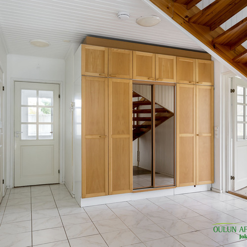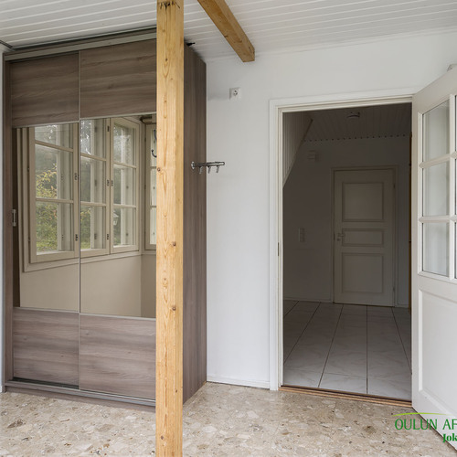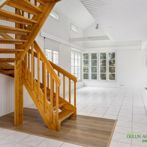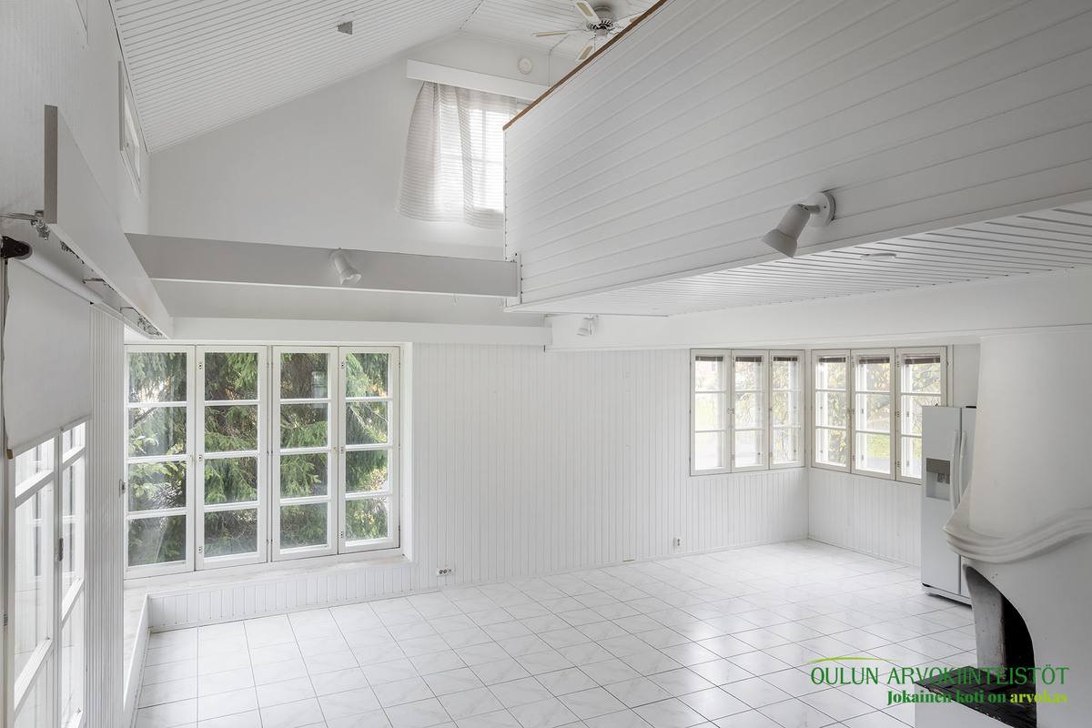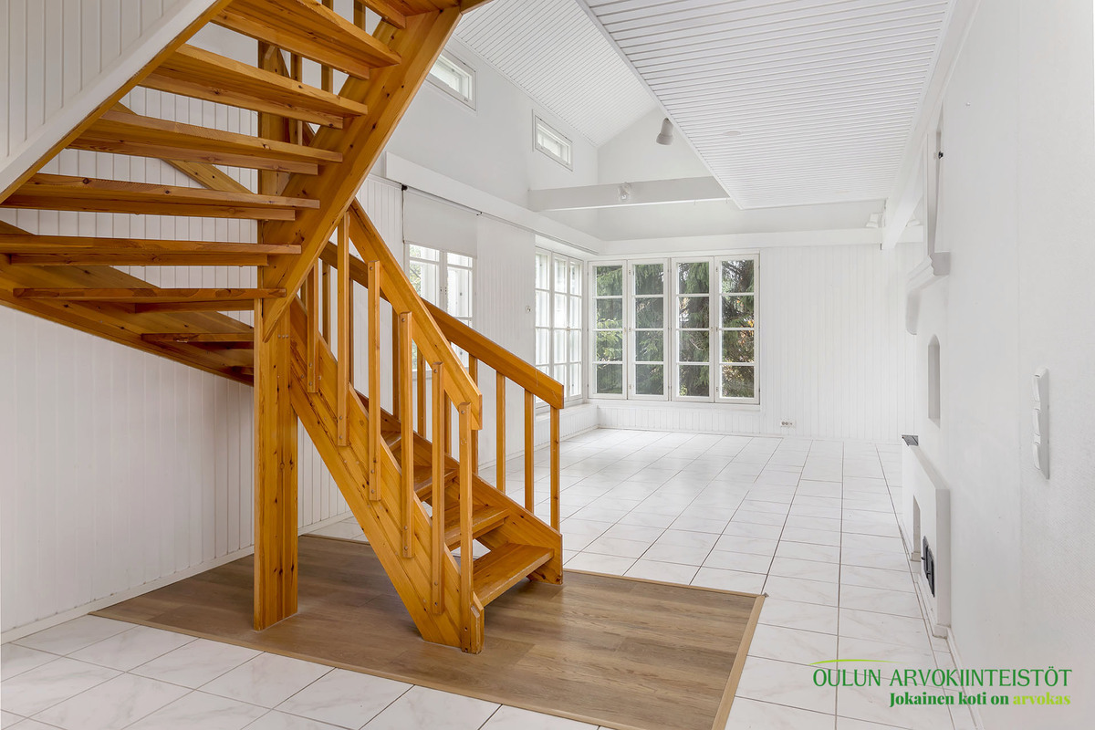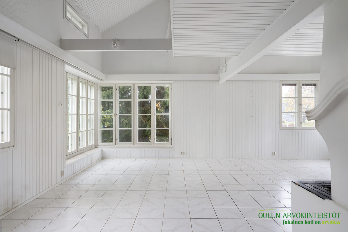 Talossa on avara ja valoisa pohjaratkaisu, jossa keittiö ja olohuone muodostavat yhtenäisen, viihtyisän kokonaisuuden. Olohuone hurmaa korkealla huonetilallaan sekä näyttävällä, massiivisella takka-/leivinuunilla, joka luo lämpöä ja tunnelmaa.