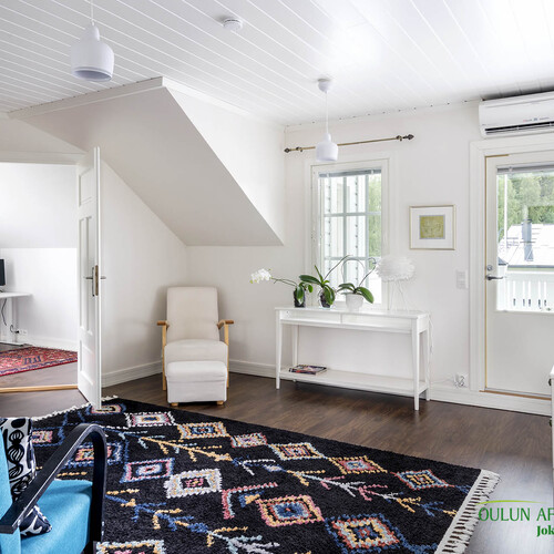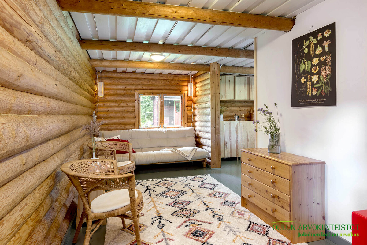 Tämä ei ole pelkästään asunto, sillä tähän kuuluu myös oma kesämökki ja rantasauna Kiiminkijoen rannassa.