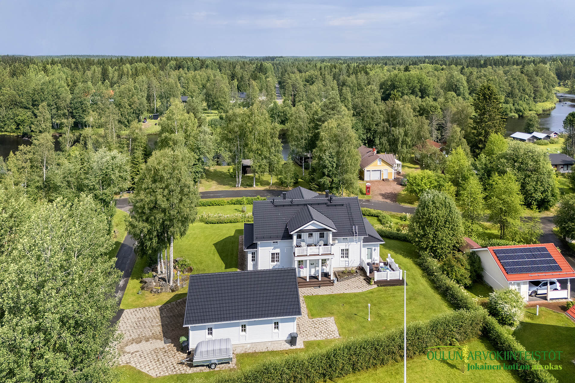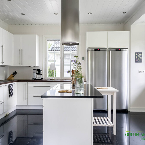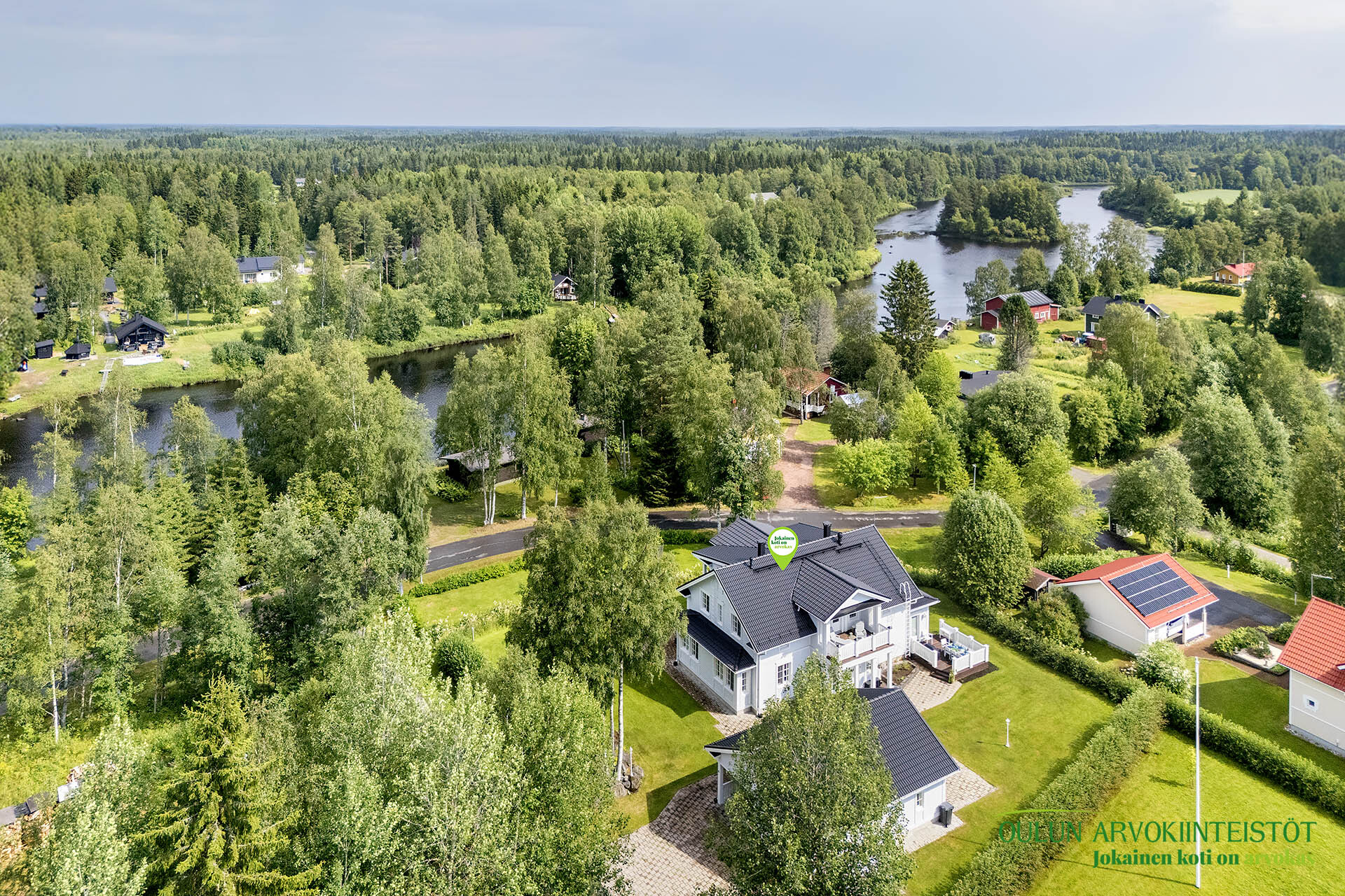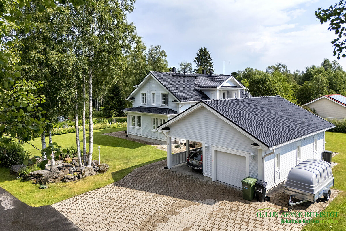 Laadukas omakotitalo ei ole koskaan vain rakennus. Se on suunnittelun, materiaalien ja sijainnin yhteispeli ja joskus kohdalle osuu kokonaisuus, jossa kaikki loksahtaa paikalleen. Tervetuloa Kiiminkijoen rantaan, yhteen seudun harvinaisimpiin ja harkituimpiin kokonaisuuksiin.