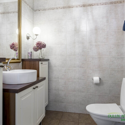 Lattia: laatta. Seinät: kaakeli.
