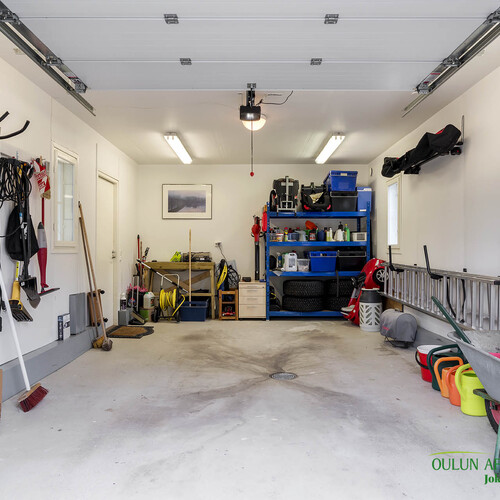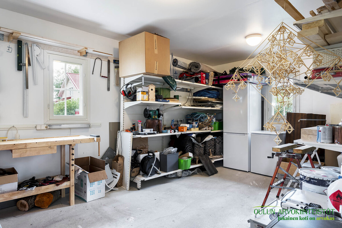 Autotallin yhteydessä lämmin varasto sekä työtila.