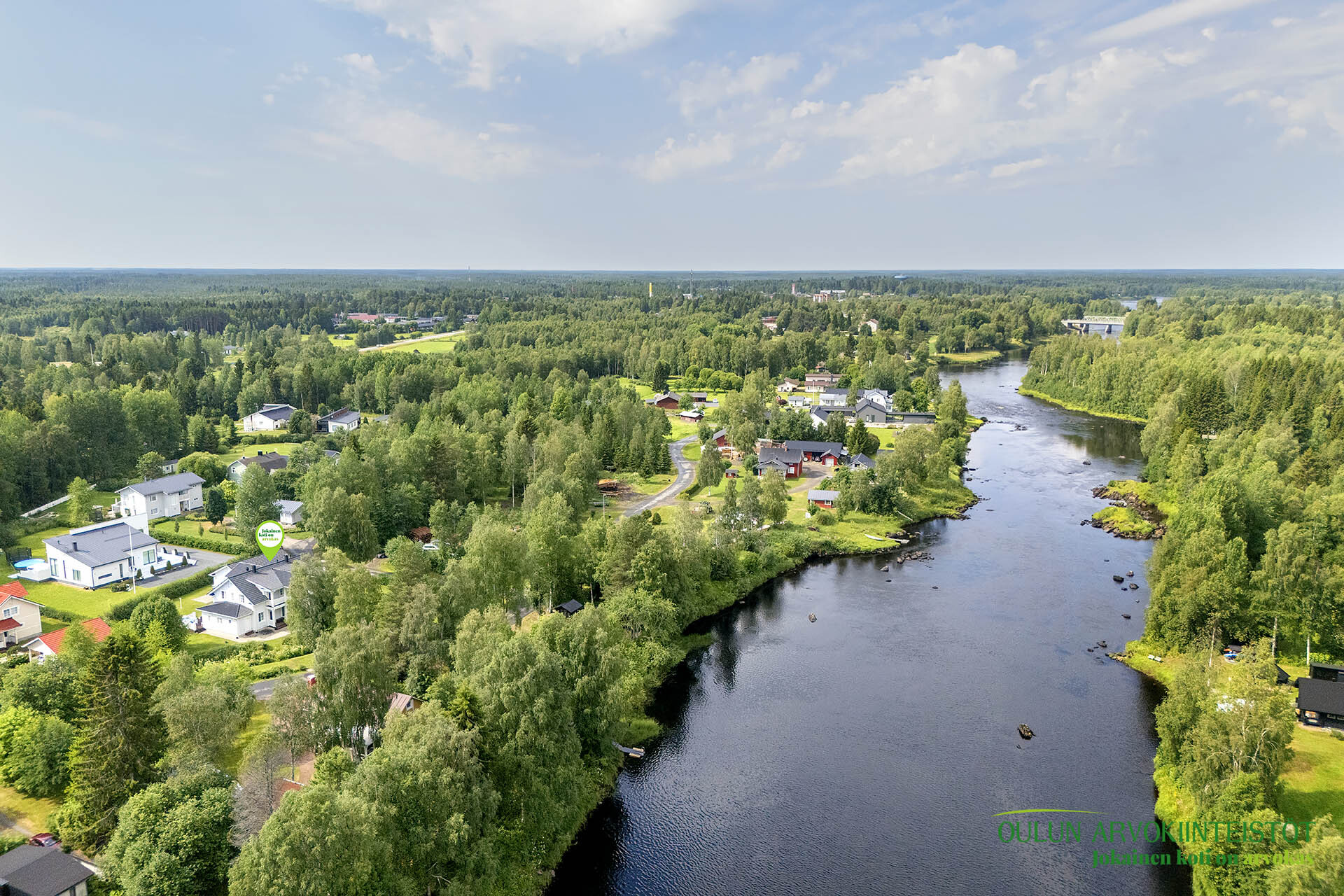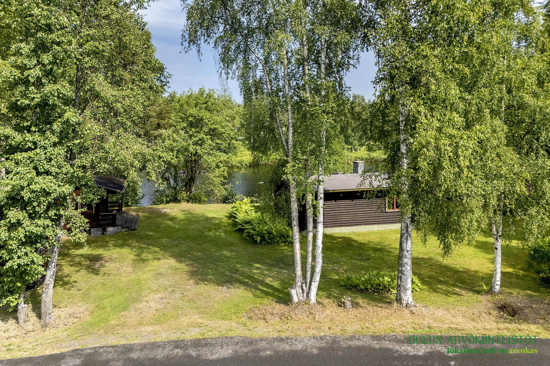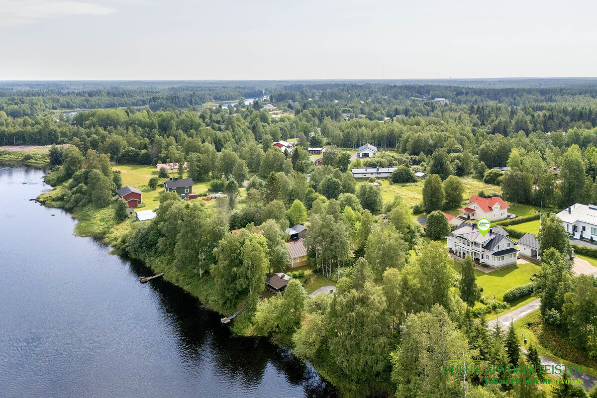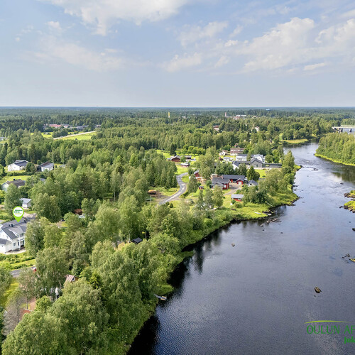 Mahtava tontti, joka ulottuu Kiiminkijokeen.