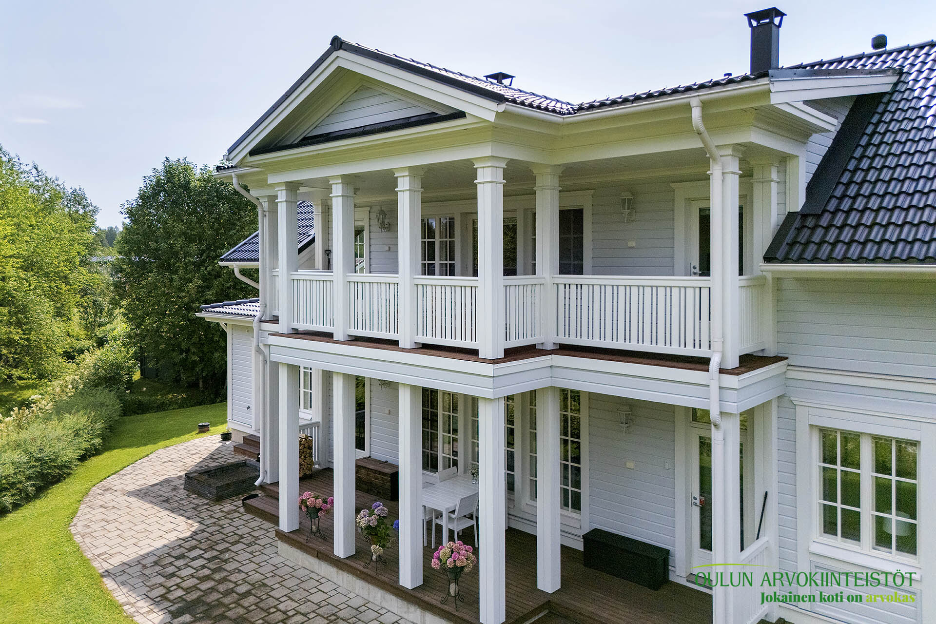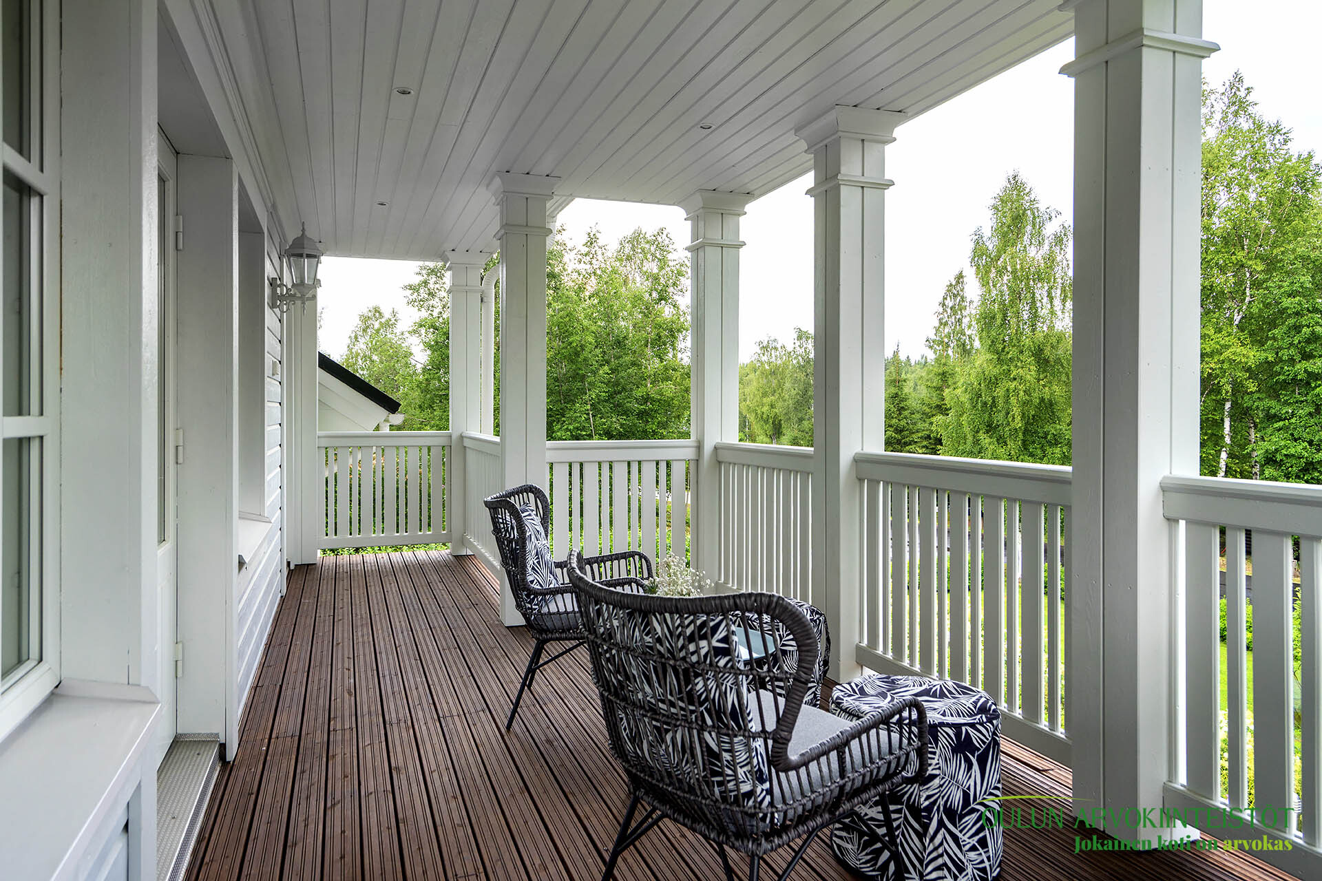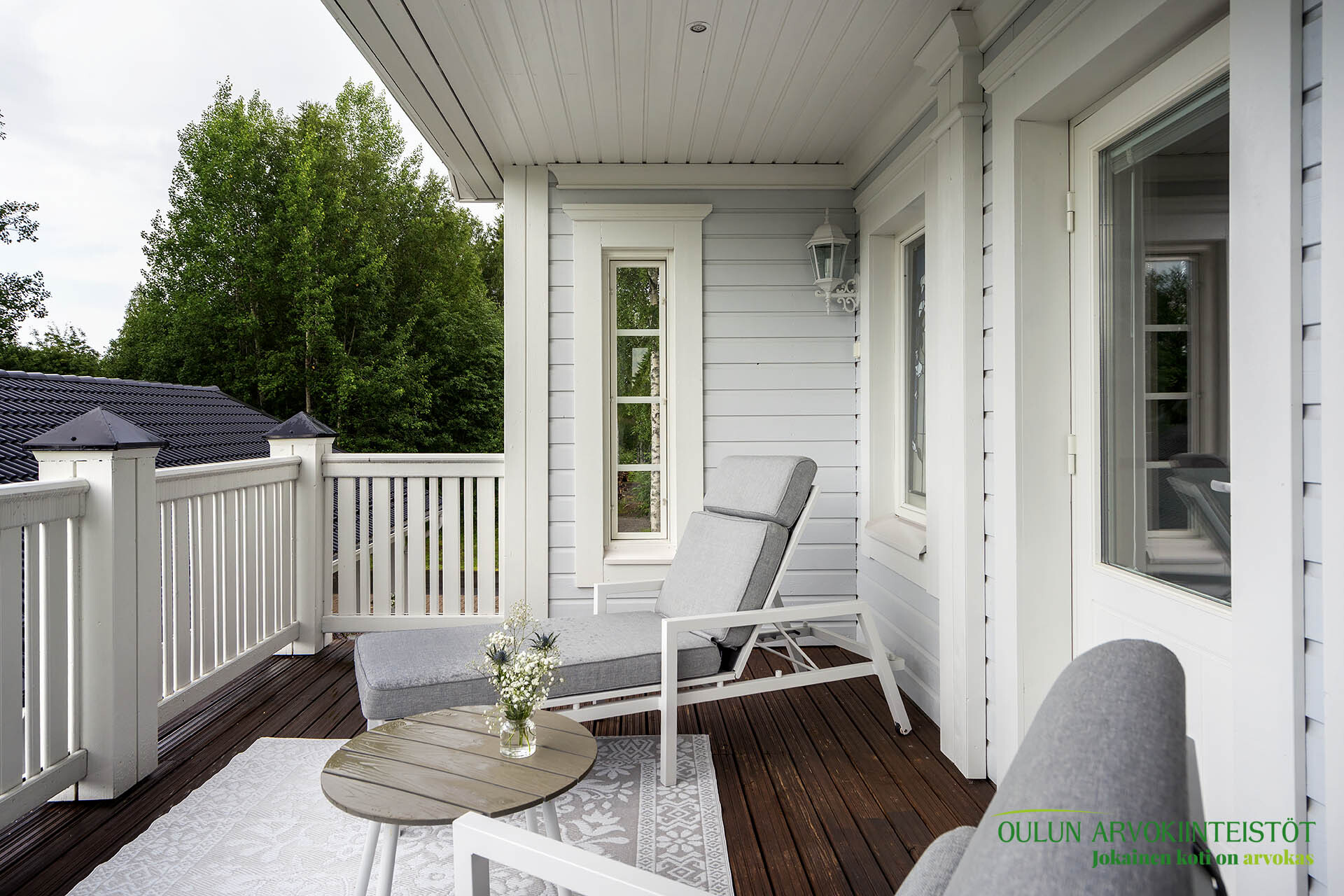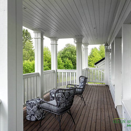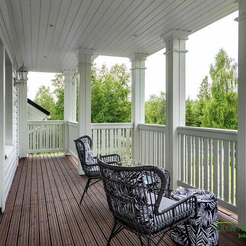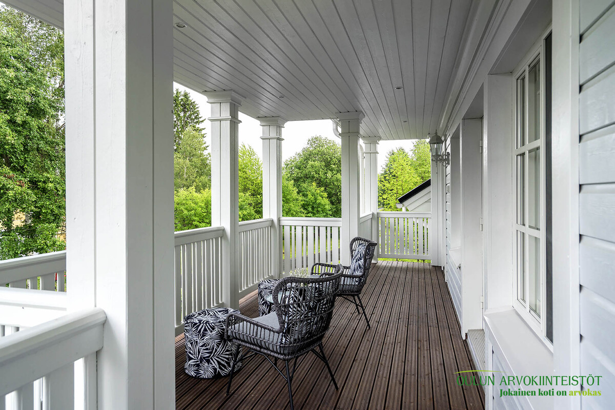 Upeat terassit molemmin puolin taloa.