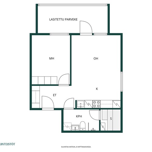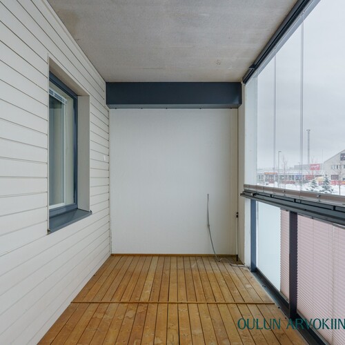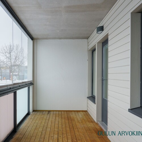 Tämä huoneisto sijaitsee talon ensimmäisessä kerroksessa ( ei kuitenkaan maantasalla) ja on varustettu todella isolla lasitetulla parvekkeella josta mukavat näköalat. Talon edessä sijaitsee tilanjakana aita joka antaa rauhaa ja näkösuojaa mutta ei peitä kuitenkaan näkymiä.