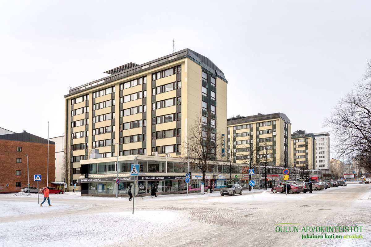Oulun keskustan kaupat, ruokapaikat, palvelut sekä juna- ja linja-autoasema ovat lähellä.