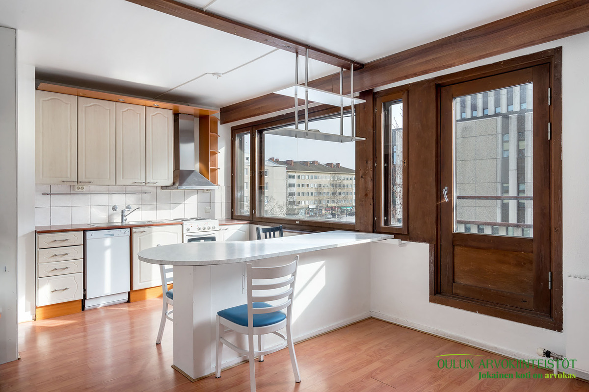 Kaupunkiasujille Oulun keskustassa neljännen kerroksen 3-4h huoneisto. Yhtiö omalla tontilla!