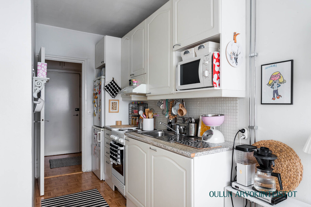 Varusteet: jääkaappipakastin, sähköliesi, liesikupu