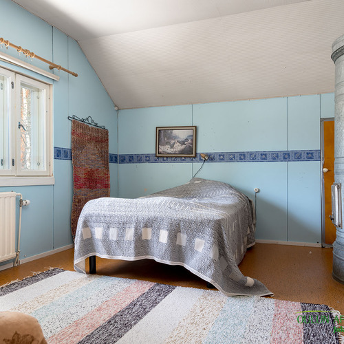 Kivat portaat vievät yläkertaan, jossa on hyvän kokoiset kaksi makuuhuonetta, sekä wc. Yläkerran makuuhuoneissa tunnelmalliset vanhanajan kakluunit antavat lämpöä ja tunnelmaa.