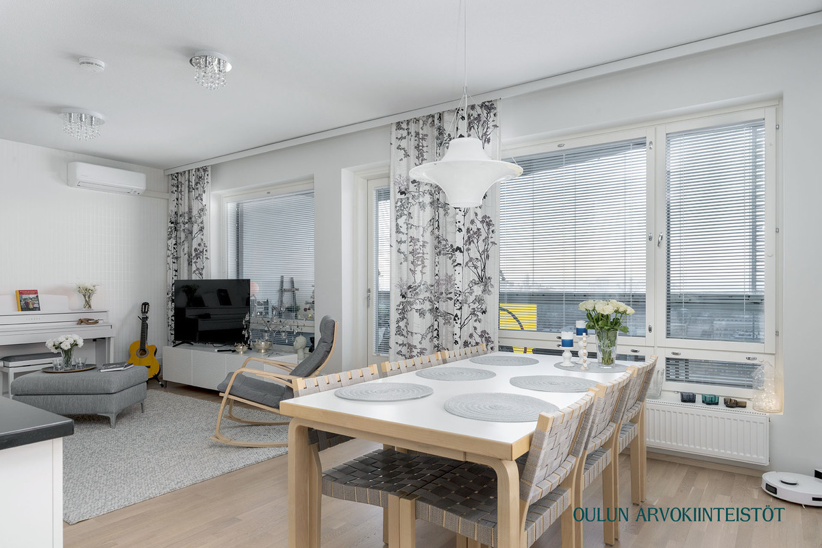 Welcome home to a perfect blend of vibrant city living and effortless comfort. This 88 m² three room apartment is ideally located right in the heart of Oulu, offering easy and carefree living on the 9 th floor.