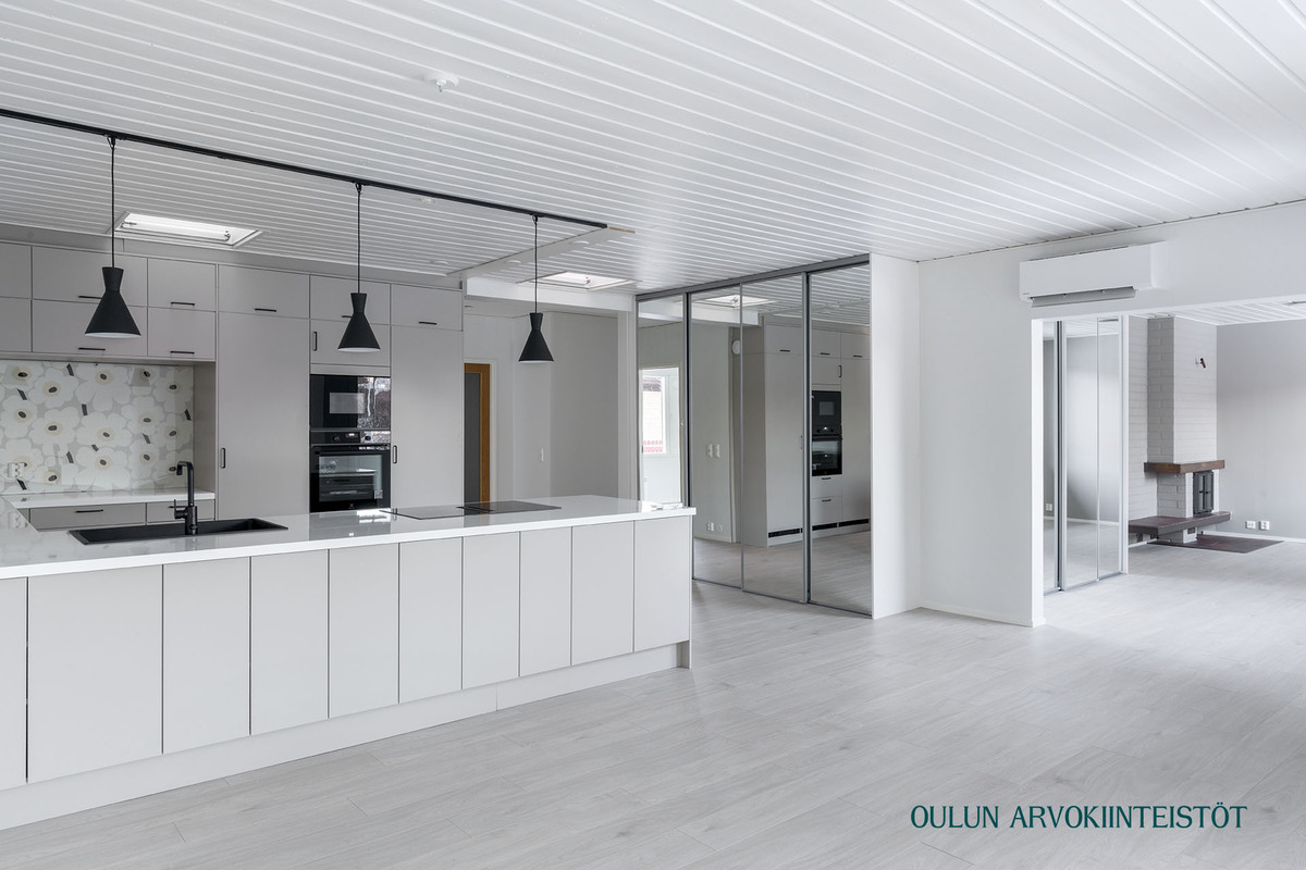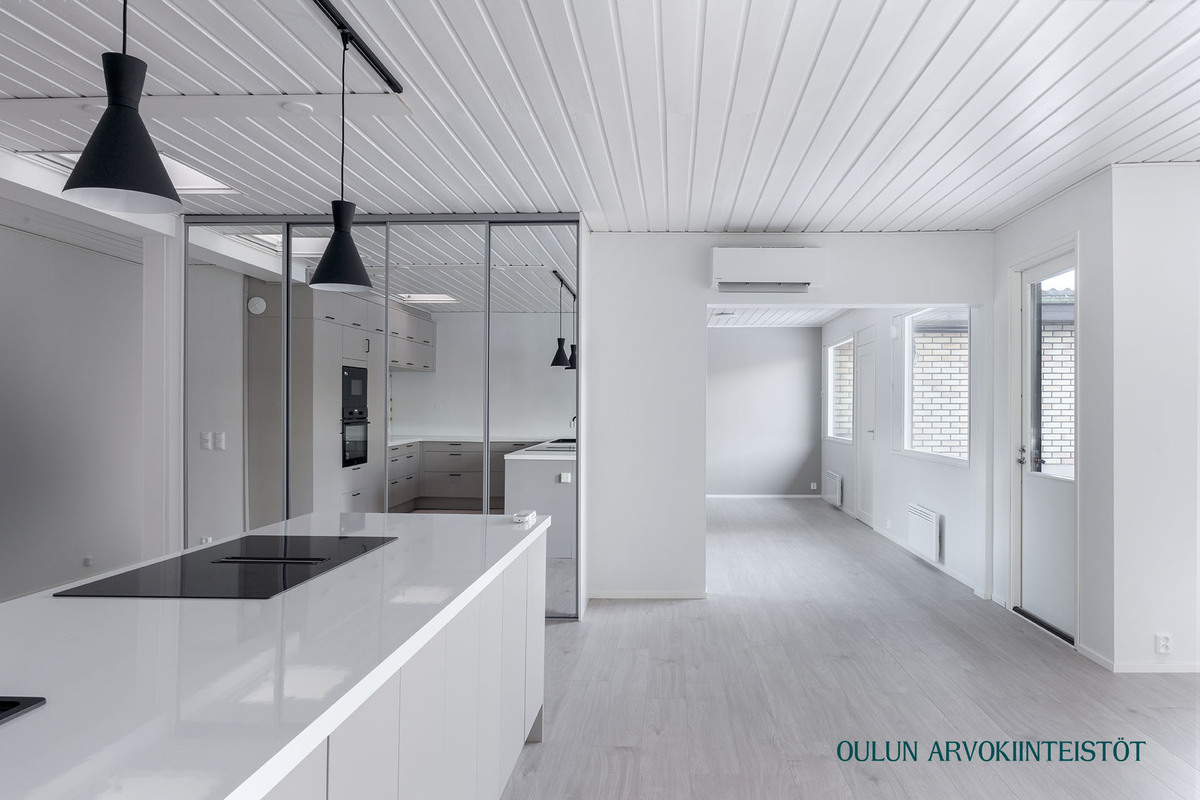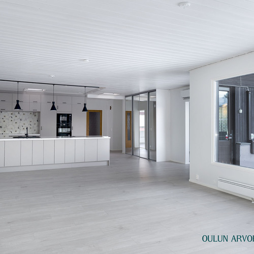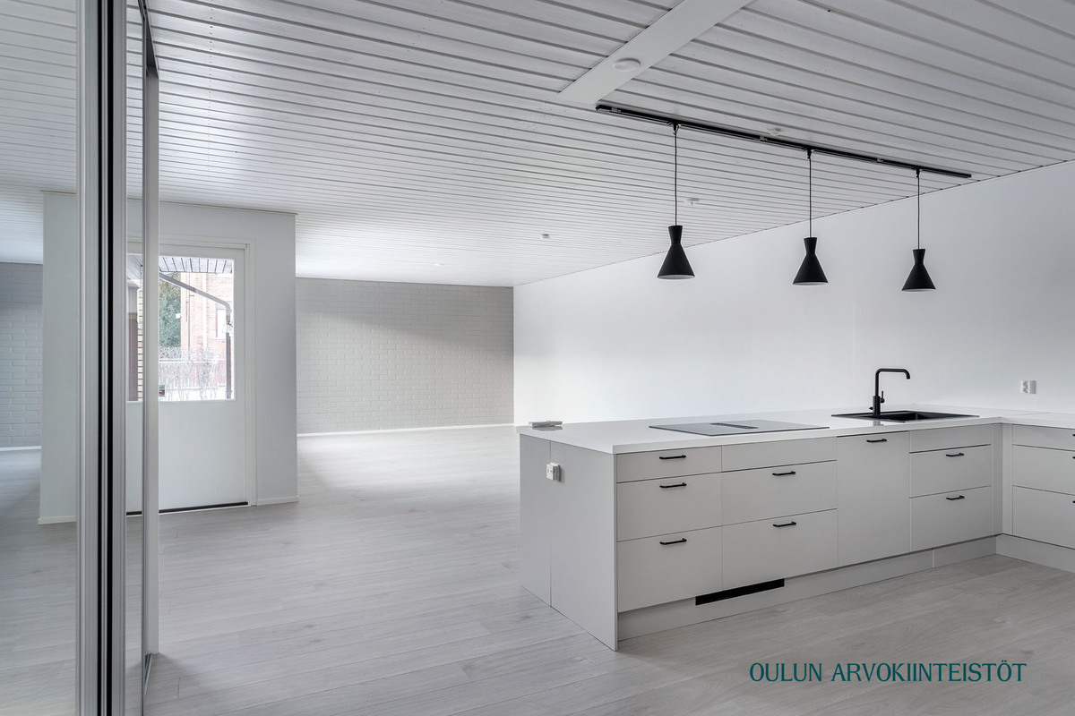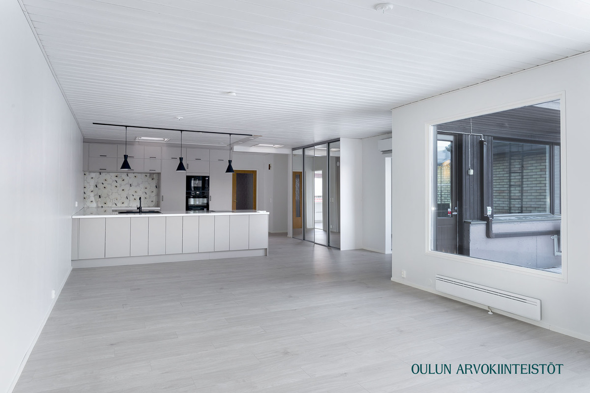 Kyseessä on noin 140 neliöinen, erittäin hyväkuntoinen rivitalohuoneisto, joka on remontoitu kattavasti ja laadukkaasti kauttaaltaan. Pohjaratkaisu on toimiva ja tilat avautuvat luontevasti toisiinsa. Suuret ikkunat tuovat runsaasti luonnonvaloa ja tekevät keittiö–olohuonekokonaisuudesta poikkeuksellisen avaran ja viihtyisän.