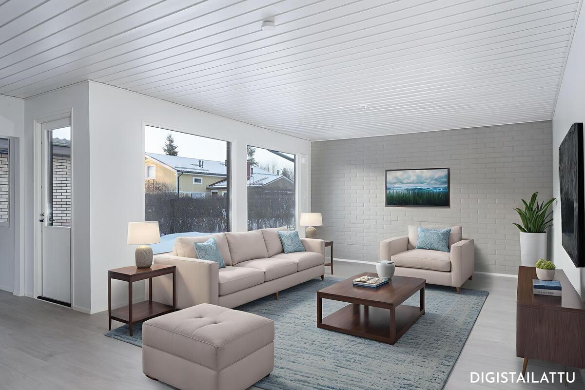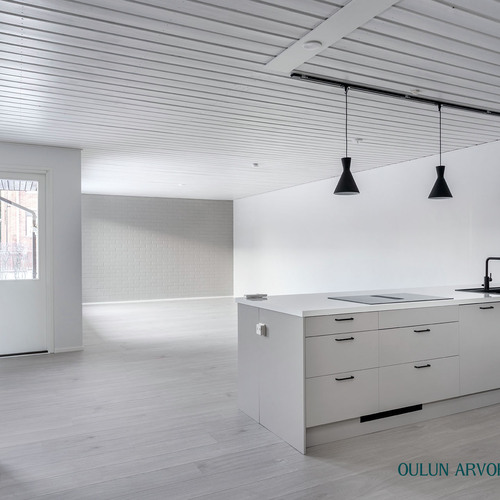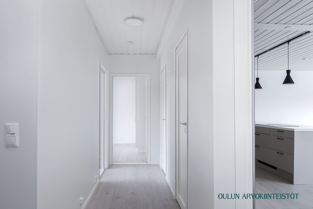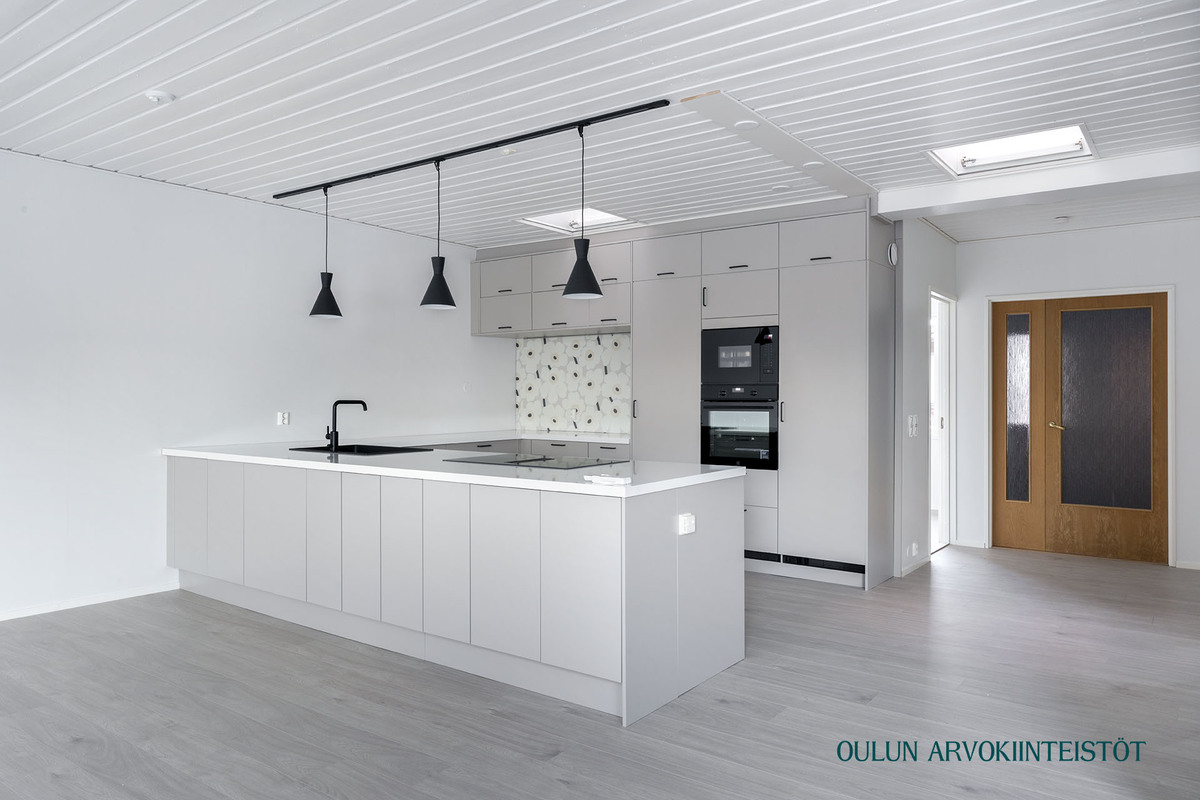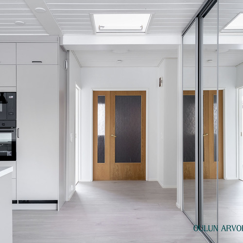 Kyseessä on noin 140 neliöinen, erittäin hyväkuntoinen rivitalohuoneisto, joka on remontoitu kattavasti ja laadukkaasti kauttaaltaan. Pohjaratkaisu on toimiva ja tilat avautuvat luontevasti toisiinsa. Suuret ikkunat tuovat runsaasti luonnonvaloa ja tekevät keittiö–olohuonekokonaisuudesta poikkeuksellisen avaran ja viihtyisän.