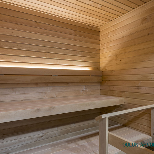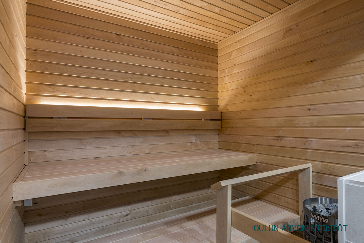 Saunan lauteiden ja paneelien materiaali: tervaleppä.
