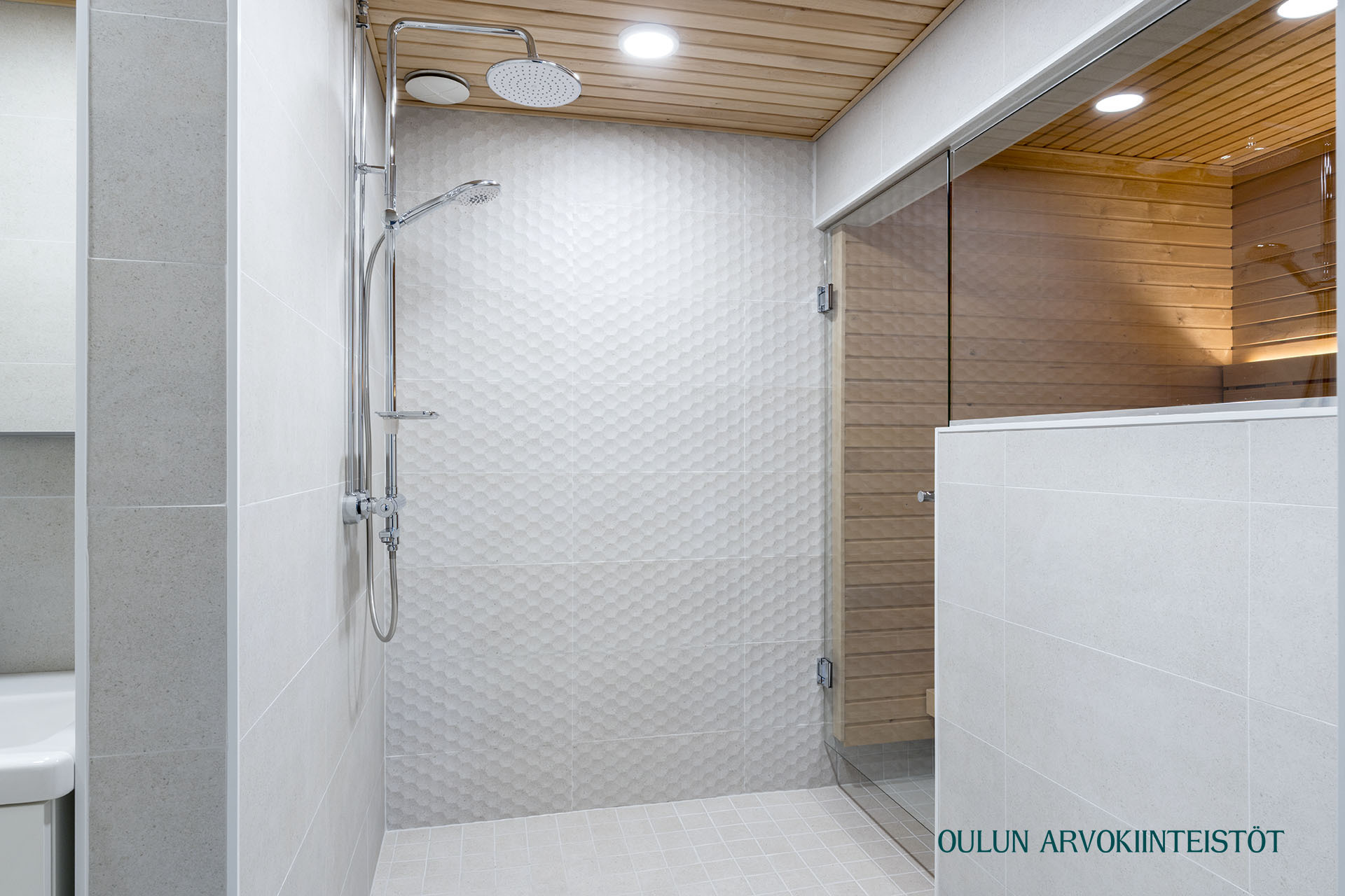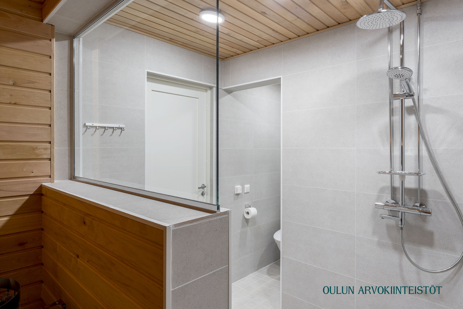 Pesutilat, sauna ja erillinen wc on toteutettu modernisti ja laadukkaasti. Vesieristykset, laatoitukset, kalusteet ja kiuas on uusittu, ja kokonaisuus on sekä tyylikäs että helppohoitoinen.