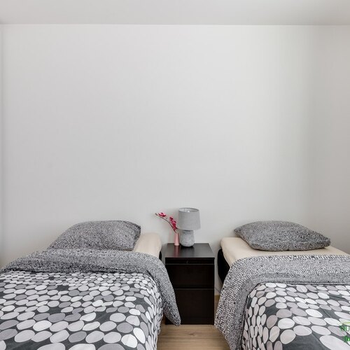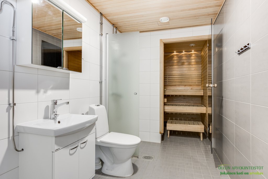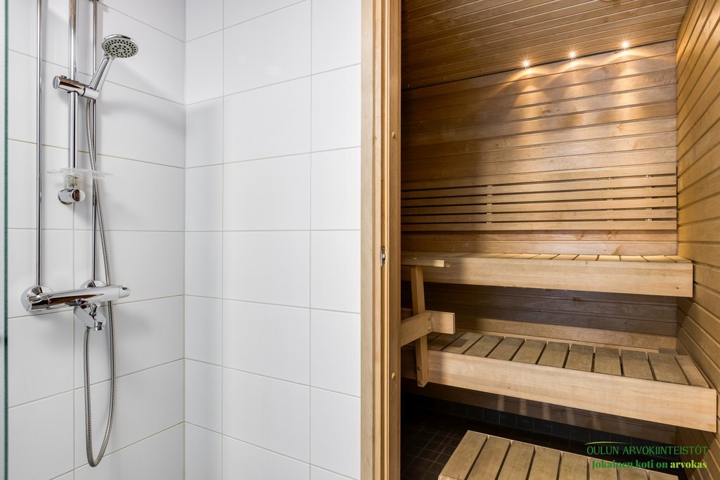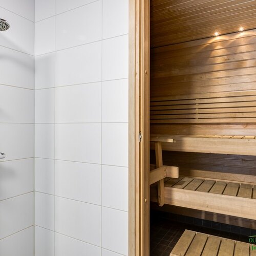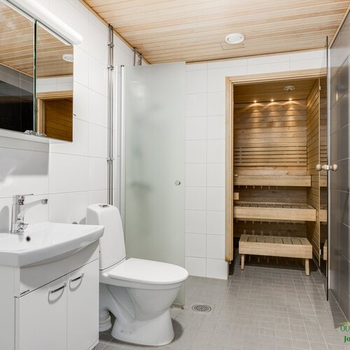 Makuuhuone on rauhallinen, tarjoten hyvät säilytystilat. Kylpyhuoneessa yhdistyvät toiminnallisuus ja moderni design, ja oma sauna tarjoaa rentouttavia hetkiä kiireisen päivän päätteeksi.