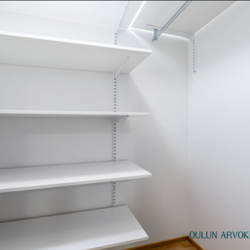 Kaappitilaa löytyy niin makuuhuoneesta, kuin asunnon omasta vaatehuoneestakin.