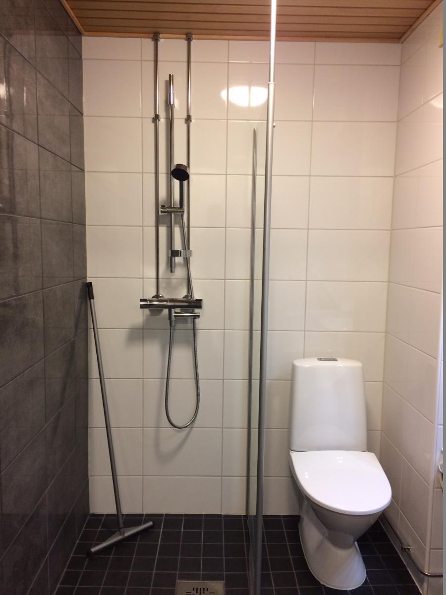 Varusteet: suihkuseinä, pesukoneliitäntä, lattialämmitys, wc-istuin, suihku, peilikaappi