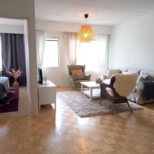 Rauhallinen taloyhtiö, josta hyvät kulkuyhteydet keskustaan. Linja-autopysäkki on vieressä.