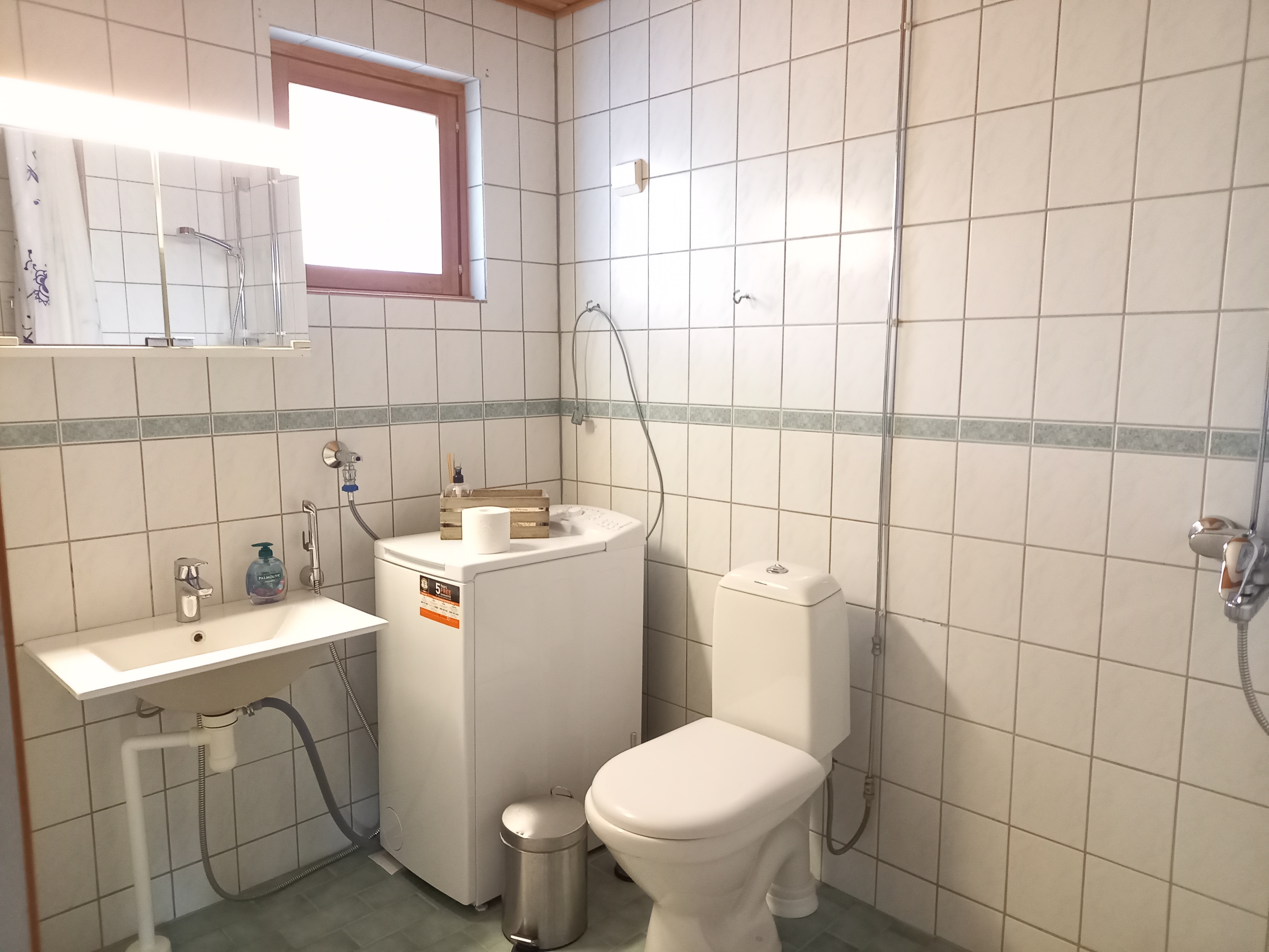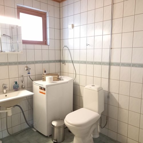 Varusteet: pesukone, pesukoneliitäntä, wc-istuin, suihku, peilikaappi