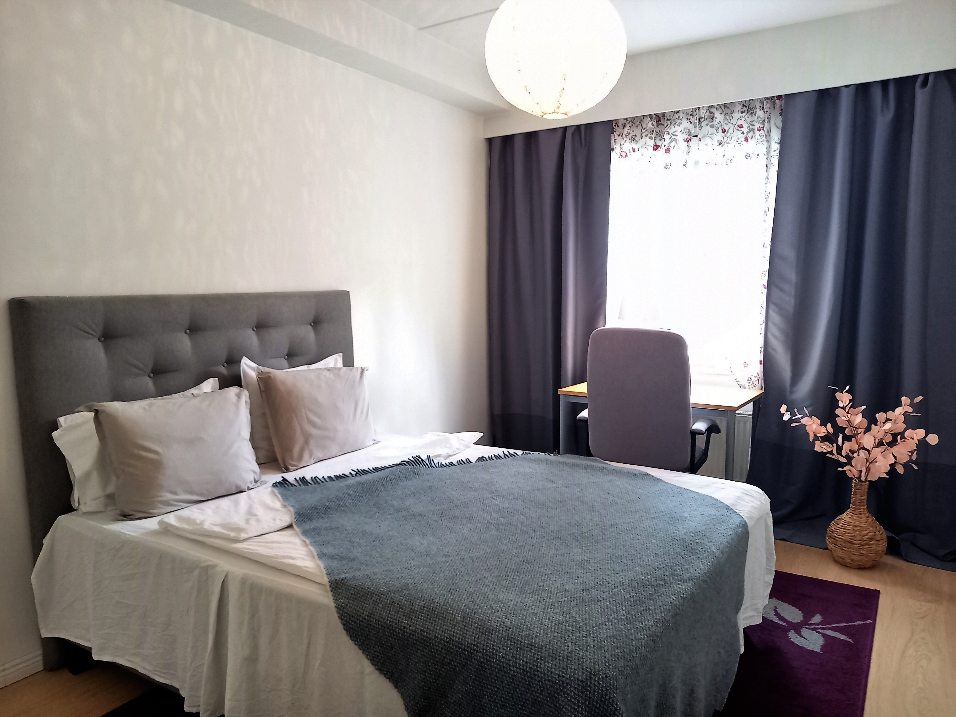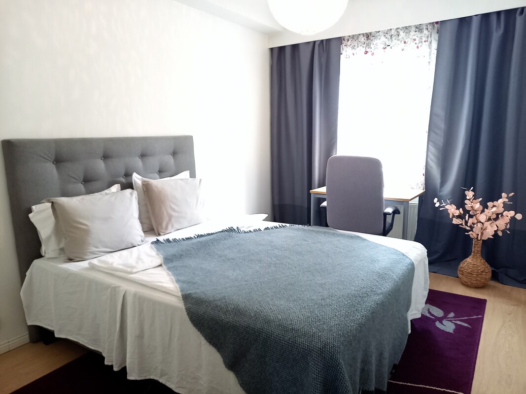Tässä kodissa on kauniin vaaleat pinnat sekä tilava makuuhuone ja tietenkin oma sauna.