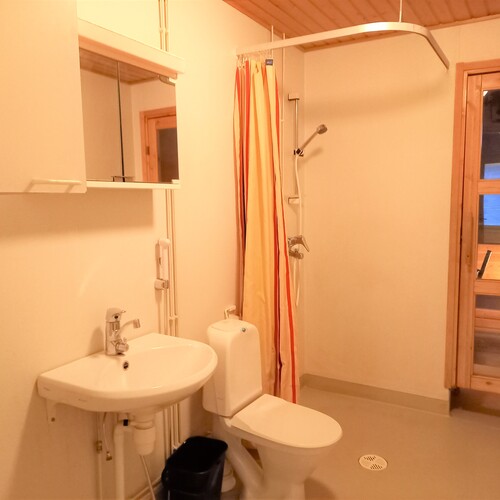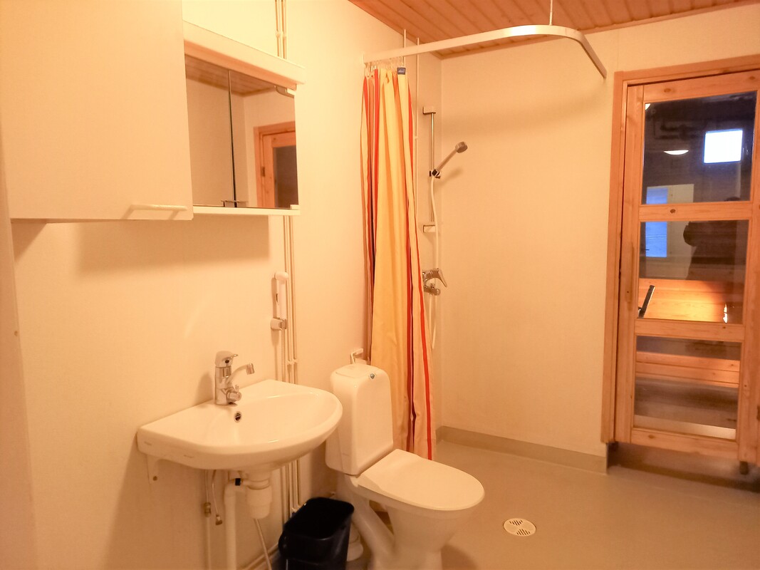 Iso kylpyhuone, jossa hyvin tilaa pyykkihuollolle ja tietenkin oma sauna!