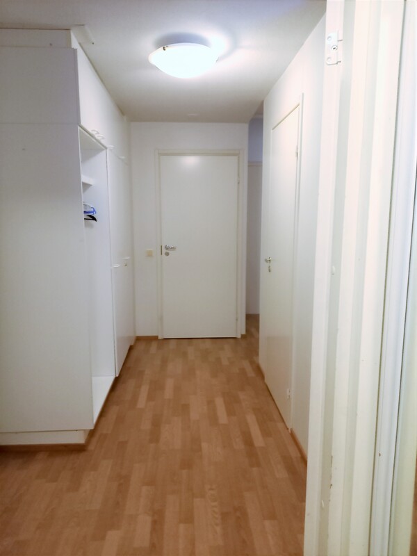 Omalla sisäänkäynnillä oleva asunto on pohjaratkaisultaan mainio. Olohuoneesta käynti parvekkeelle, josta näkymät sisäpihalle.